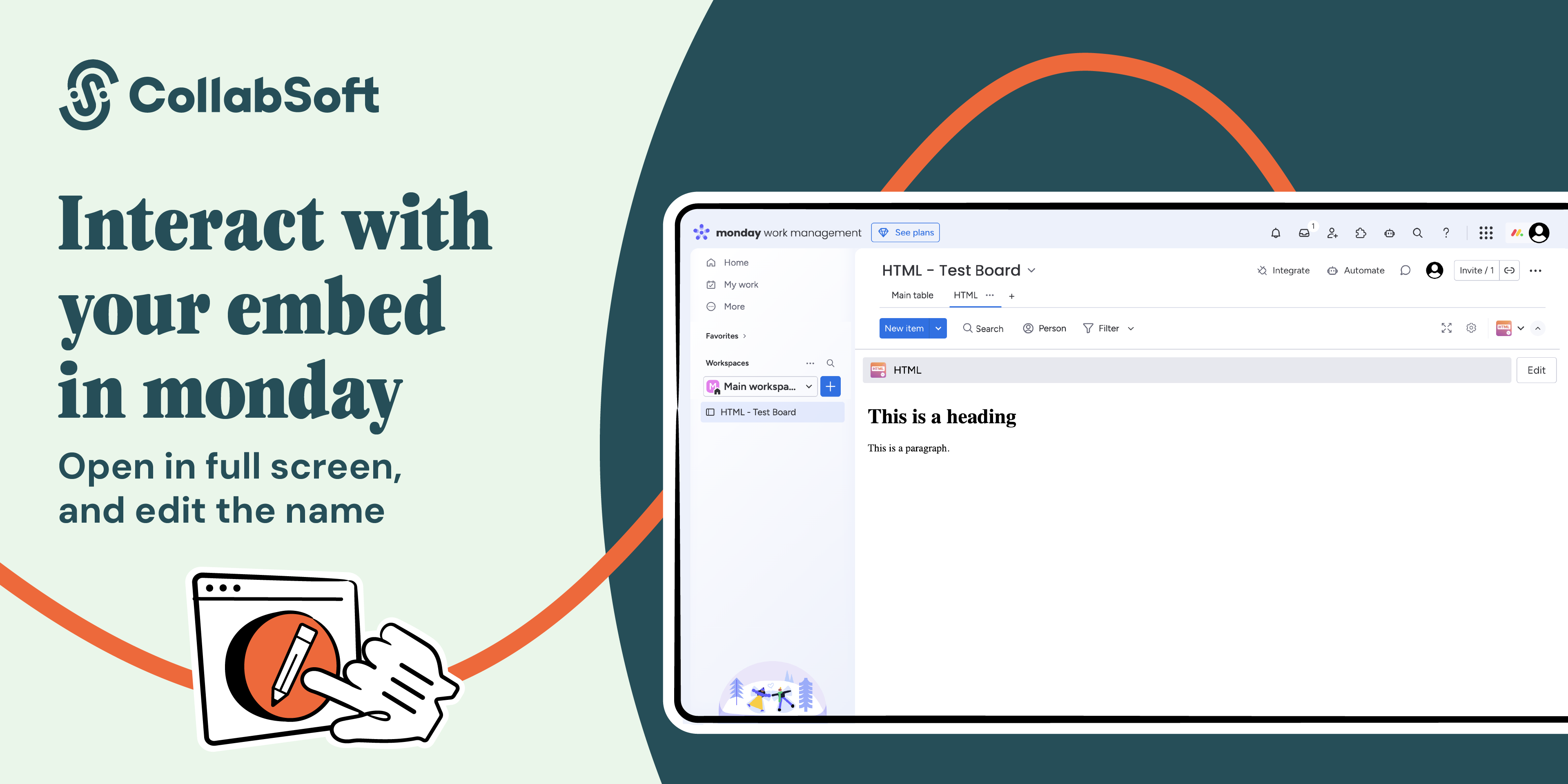Add a HTML block into monday.com and make all kinds of content appear in your workflows: interactive forms, images, videos, even a complete web app.