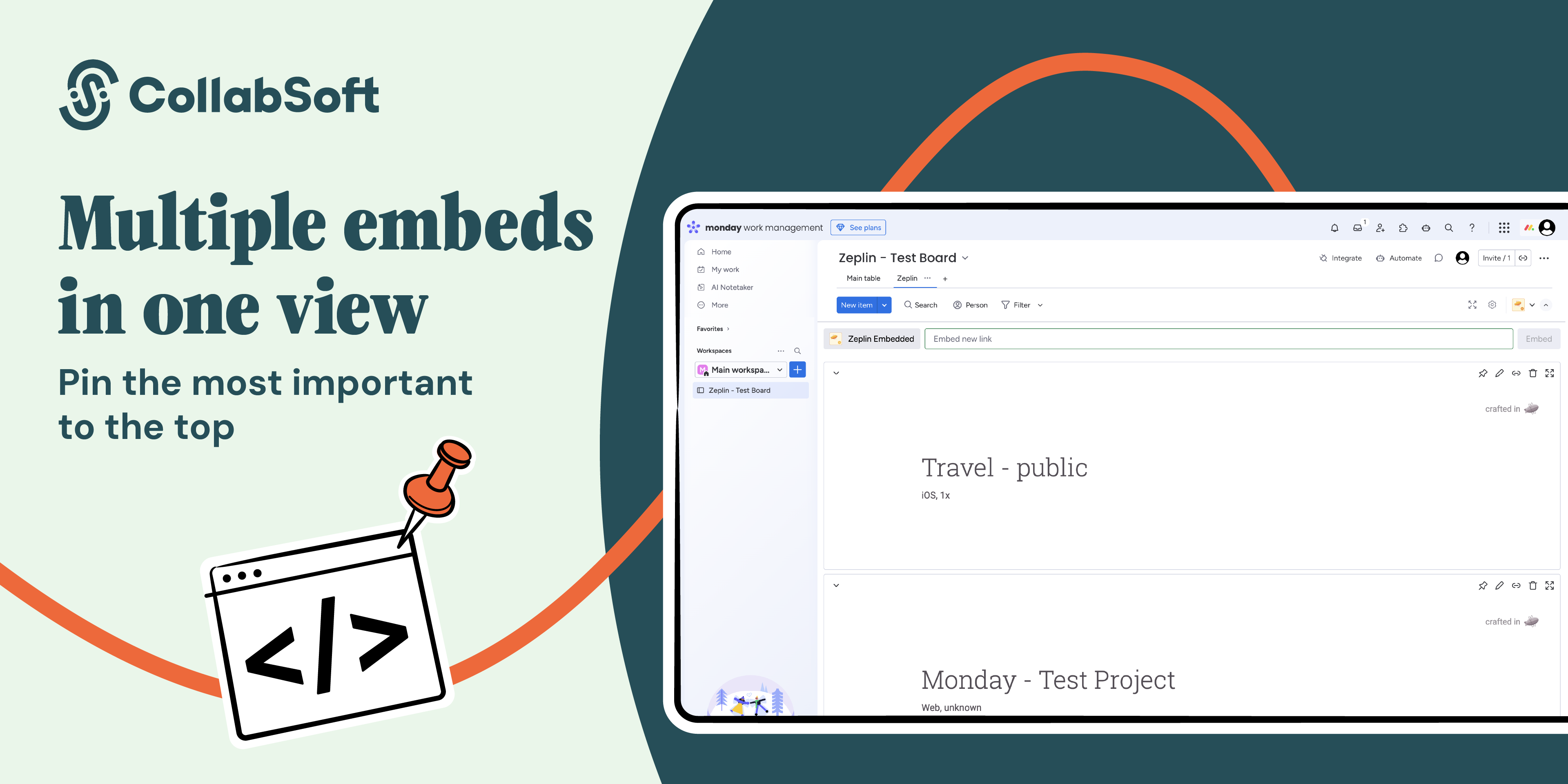Embed your Zeplin scenes in monday.com items, boards, or dashboards for flexible collaboration between designers, developers, and other stakeholders.
