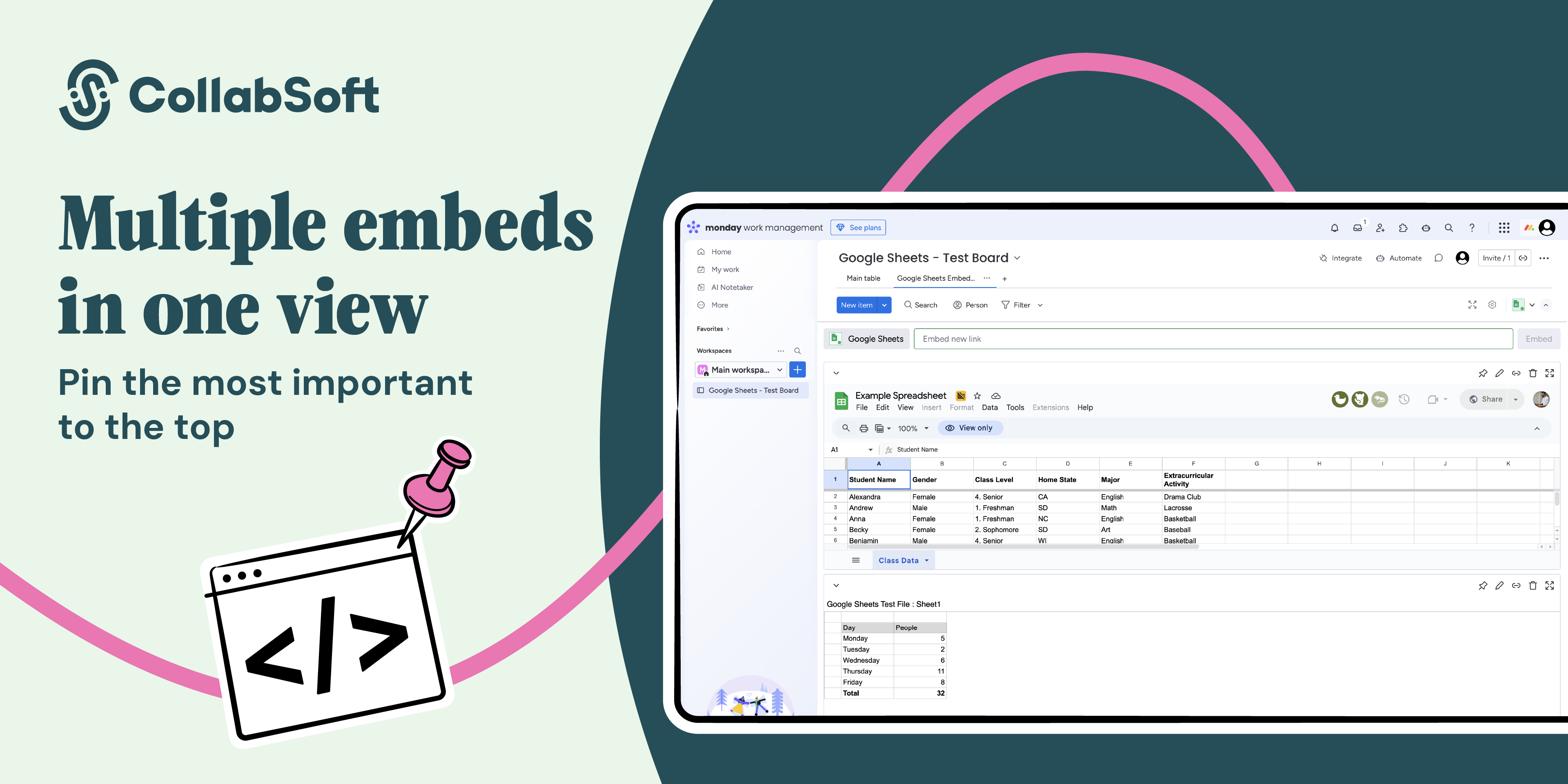 Instead of manually sharing Google Sheets links, embed the data in monday.com and give everyone instant visibility.