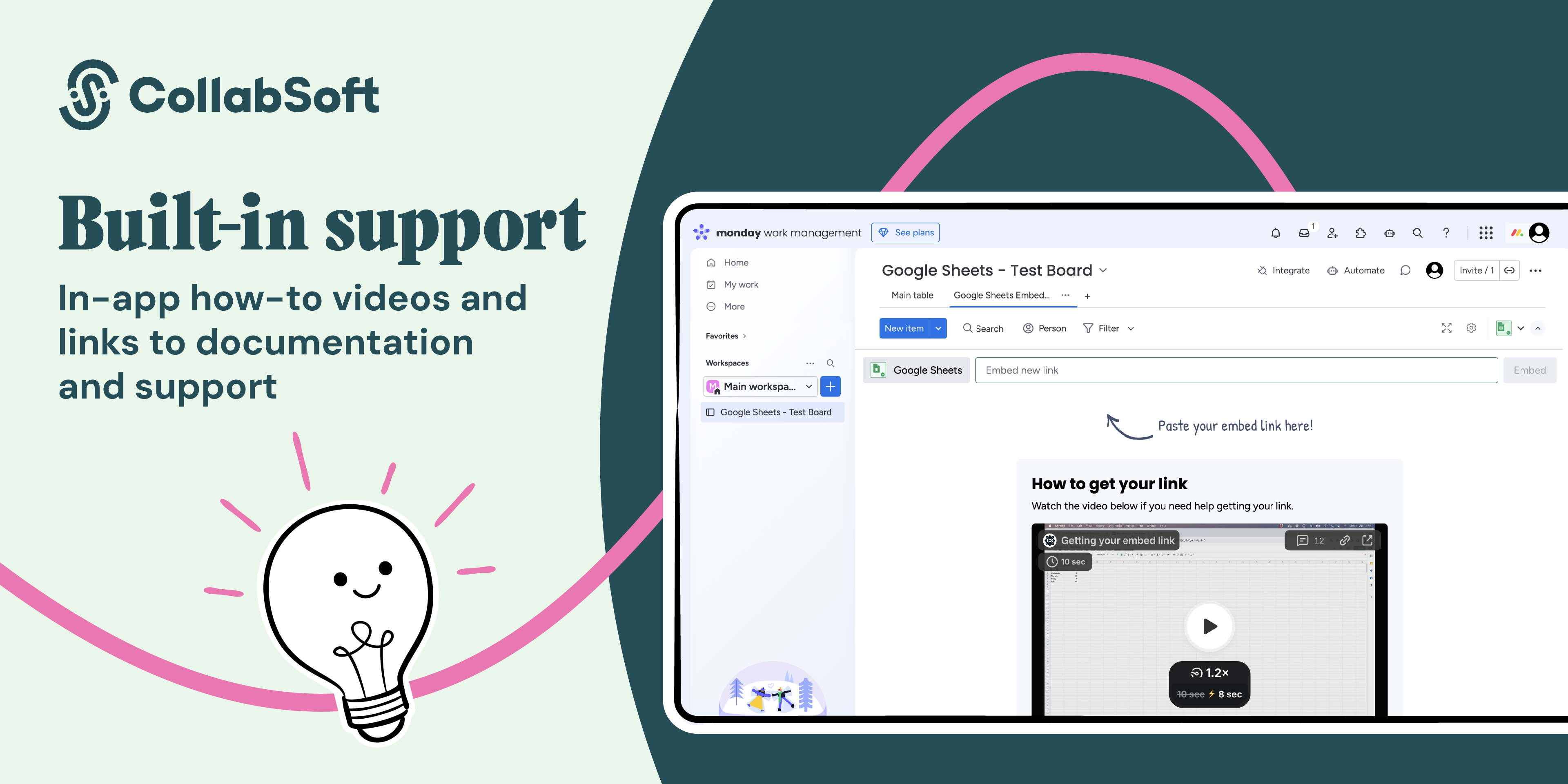 When you open the app in monday.com, how-to videos show you how to get your link. You’ll also find links to our documentation and support portal if you need more help.