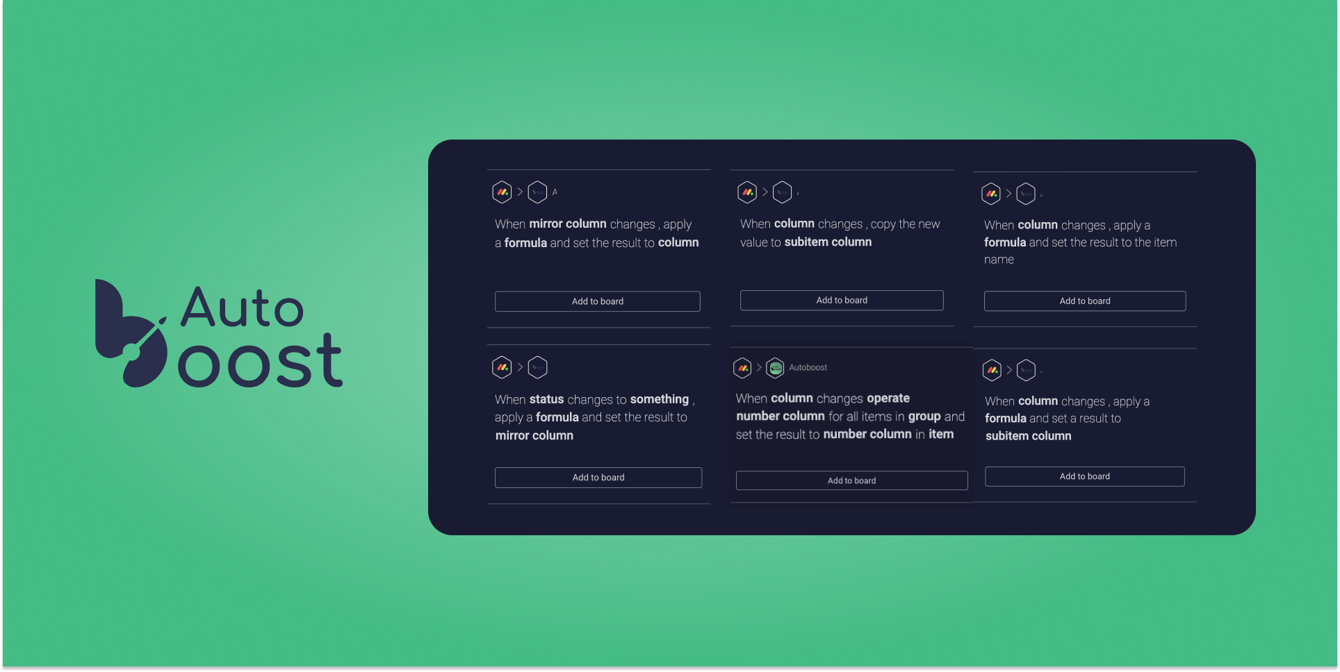 Revolutionize your monday.com boards with the all-in-one tool that brings unmatched automation and flexibility. From advanced column manipulation to seamless data transfers, Autoboost does it all—saving you time and boosting productivity.
