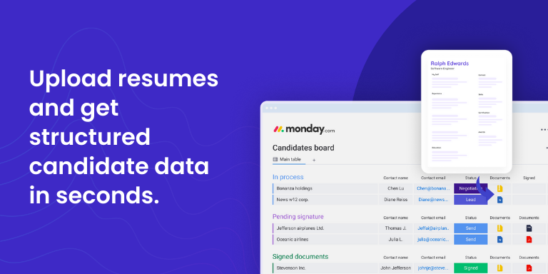 JetScan HR JetScan HR is an AI-powered resume parsing tool built for hiring teams on monday.com. It converts raw resumes into structured candidate profiles — with skills, experience, contact details, and FitScore insights — so recruiters can screen faster and make smarter decisions.
