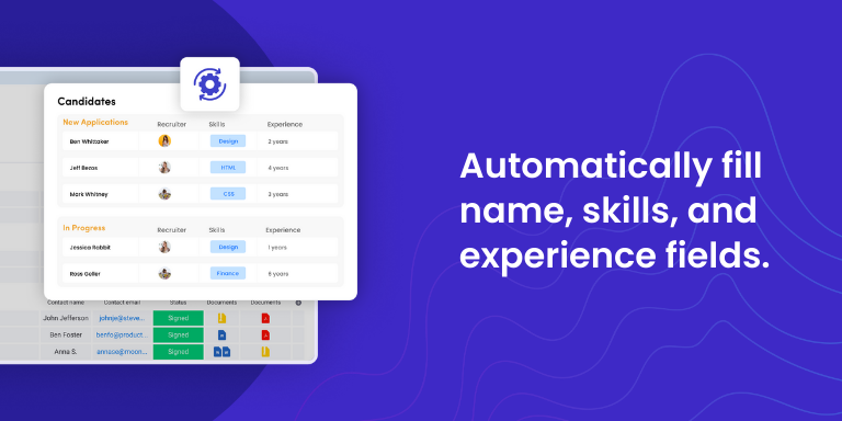 • AI resume parsing – Extract skills, experience, education, responsibilities, and contact details with no manual entry.