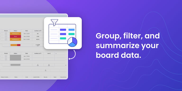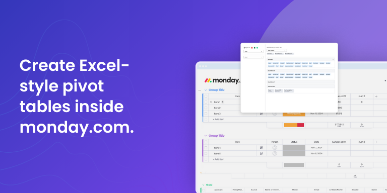 • Dynamic pivot tables – Create live pivot tables from your boards and restructure data in seconds.