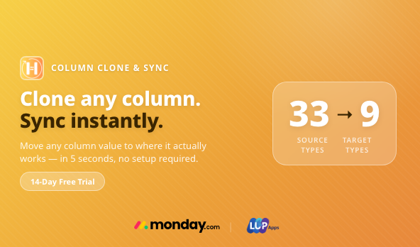 Column Clone & Sync lets you move data between any column types in monday.com - instantly.