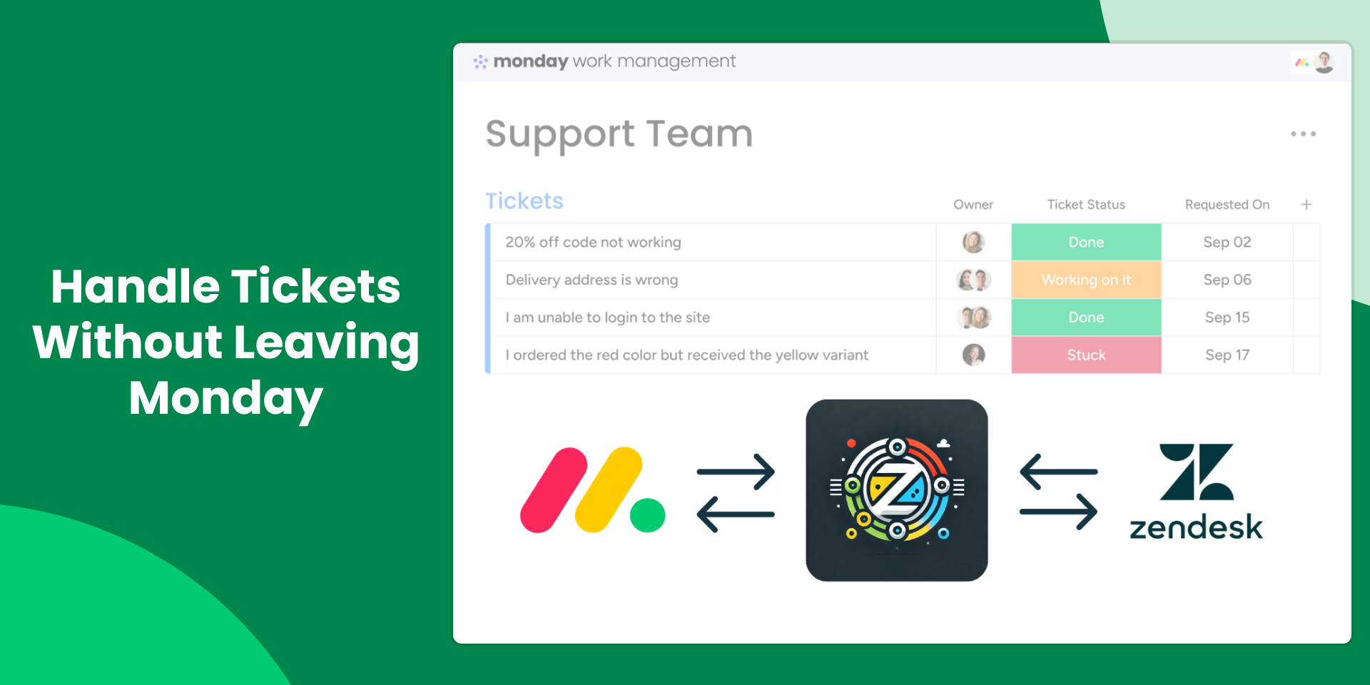 Let product or ops teams follow Zendesk replies right inside monday.com — no tool-switching