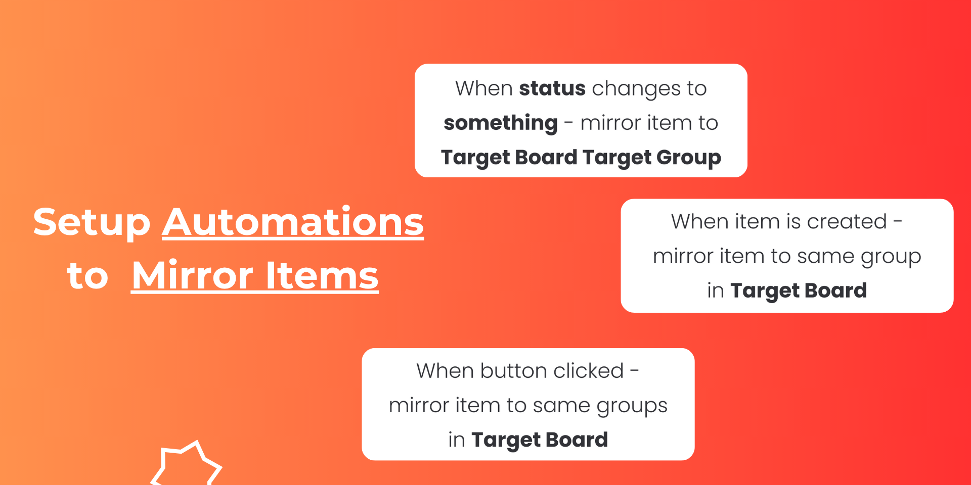 ✅ Set up automations like “When status changes to something, mirror item to target board and group”
