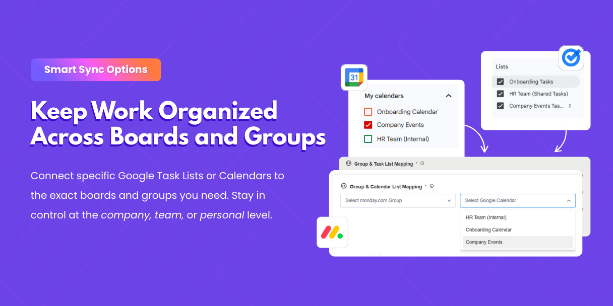 π― Customizable sync settings β Choose which boards, calendars, task lists, and fields to keep in sync.