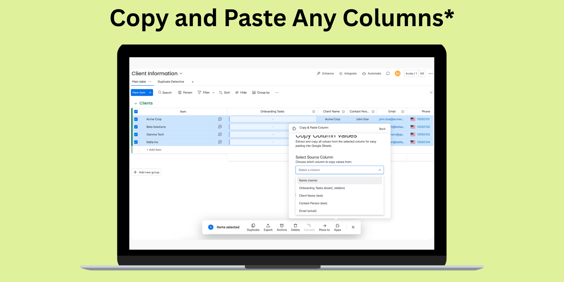 Copy & Paste Column - Fast Data Movement for monday.com