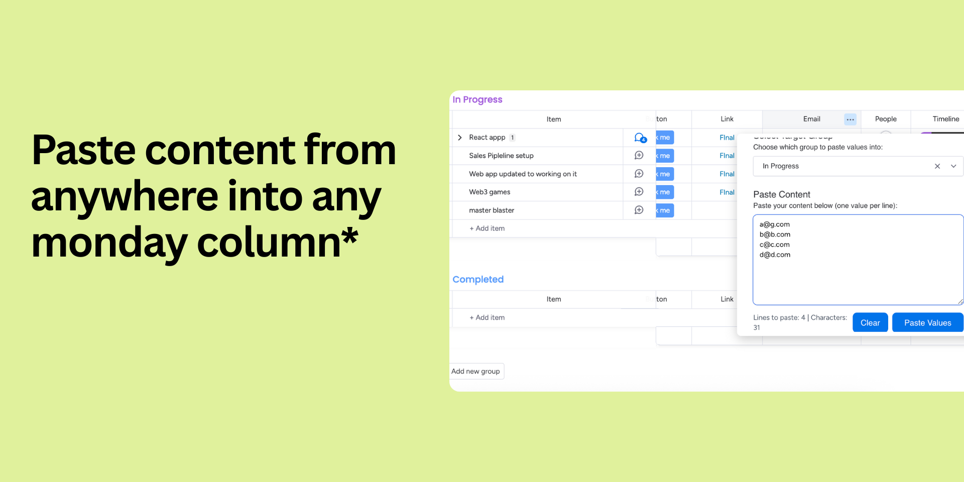 Paste content from anywhere into your monday columns