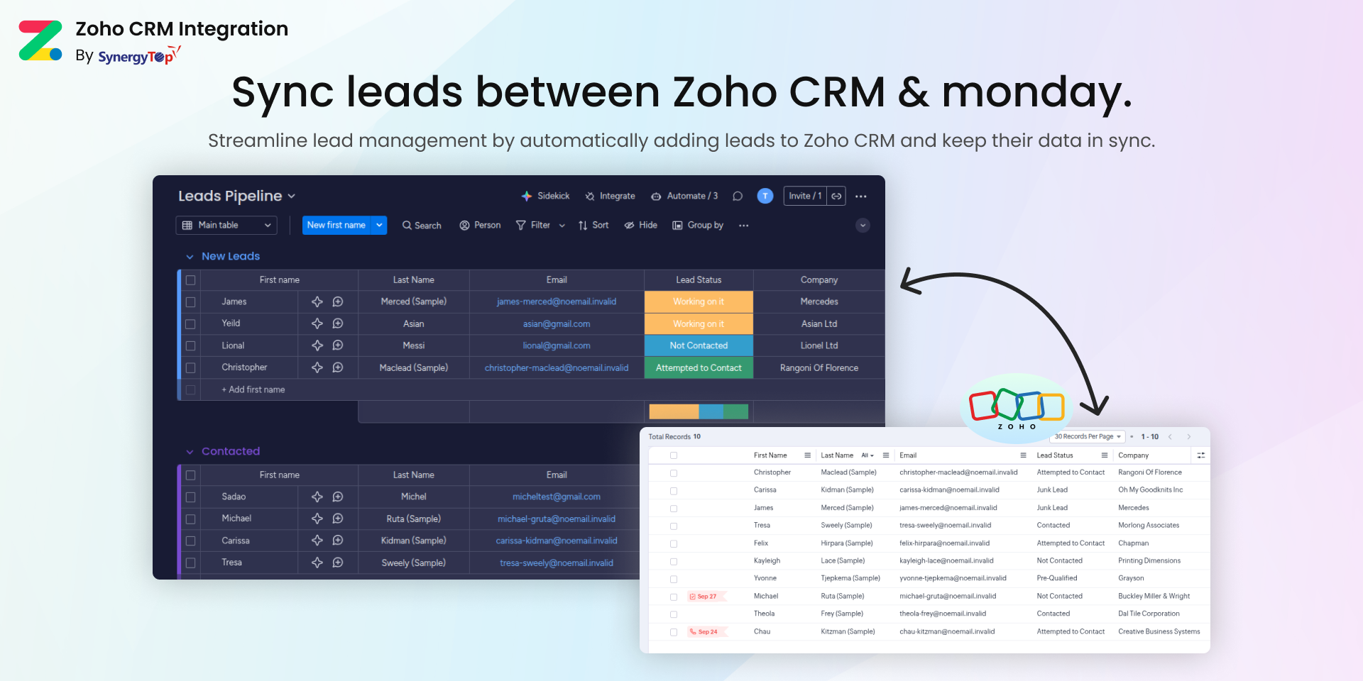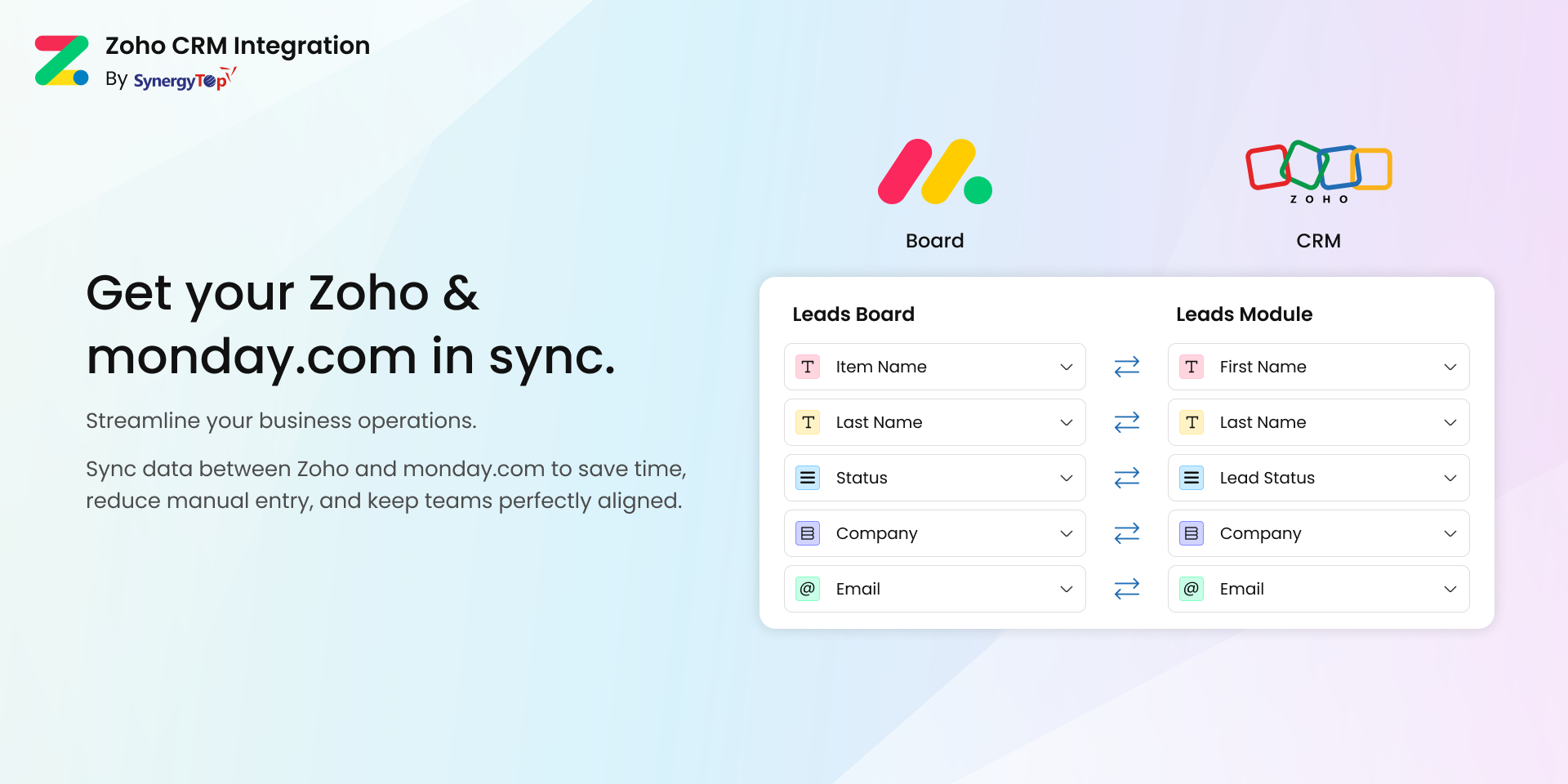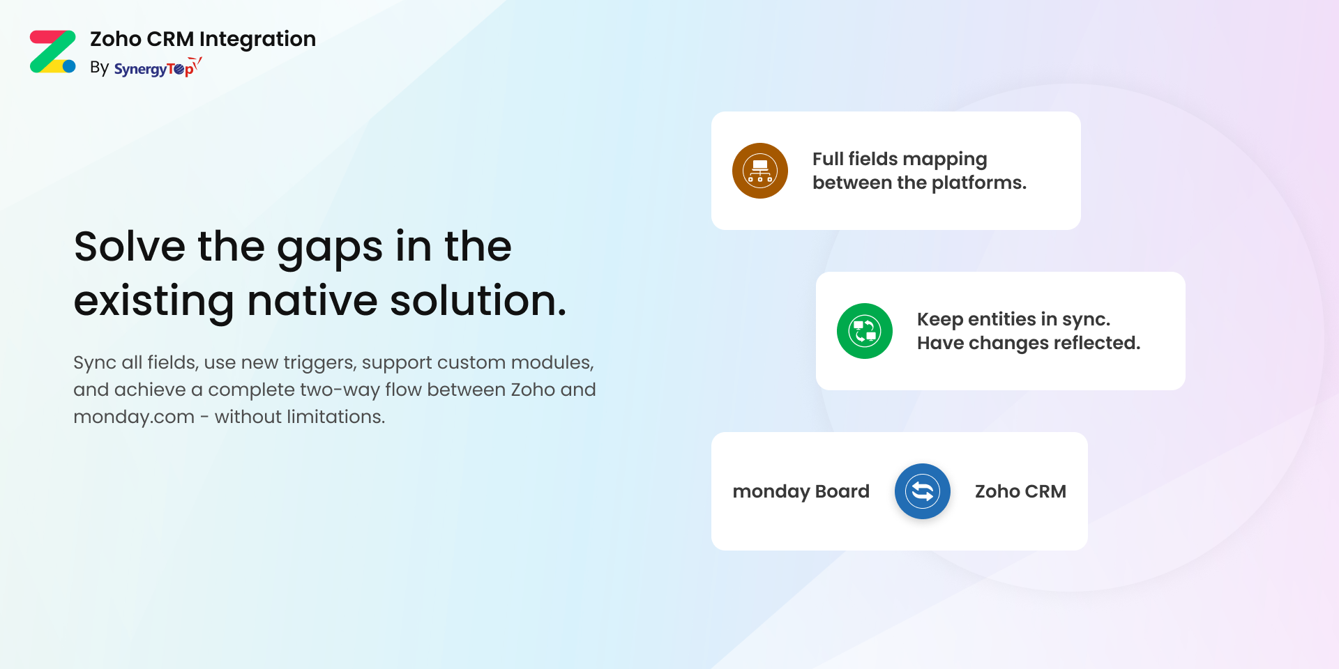 Connect your monday.com boards with Zoho CRM and other Zoho modules like never before.