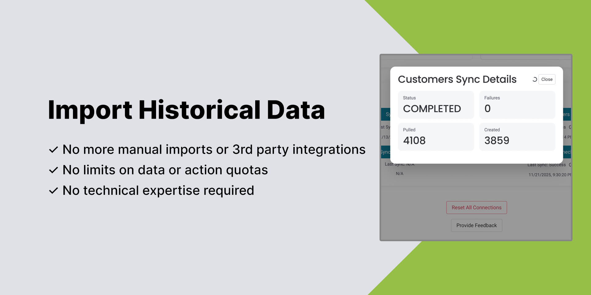 Historical Data - import all of your historical shop data for analysis with a click of a button, no more headaches downloading spreadsheets or 3rd party sync integrations