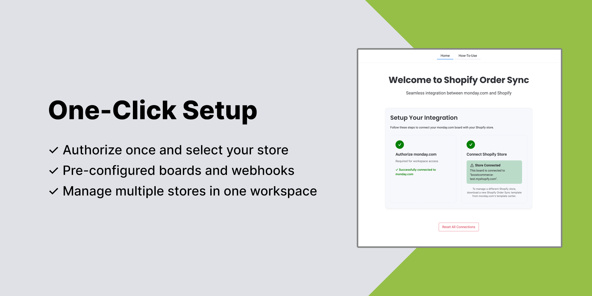 Multi-store support - connect multiple Shopify stores across your monday.com workspace.