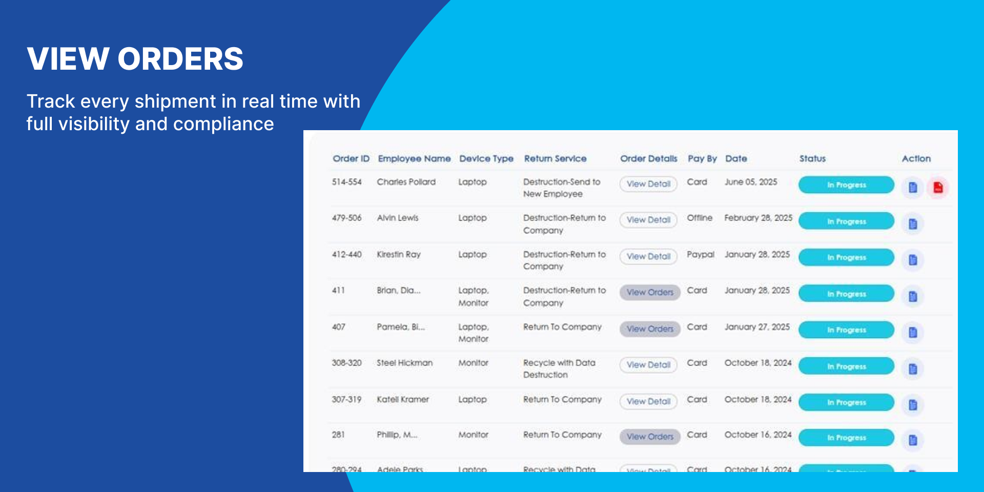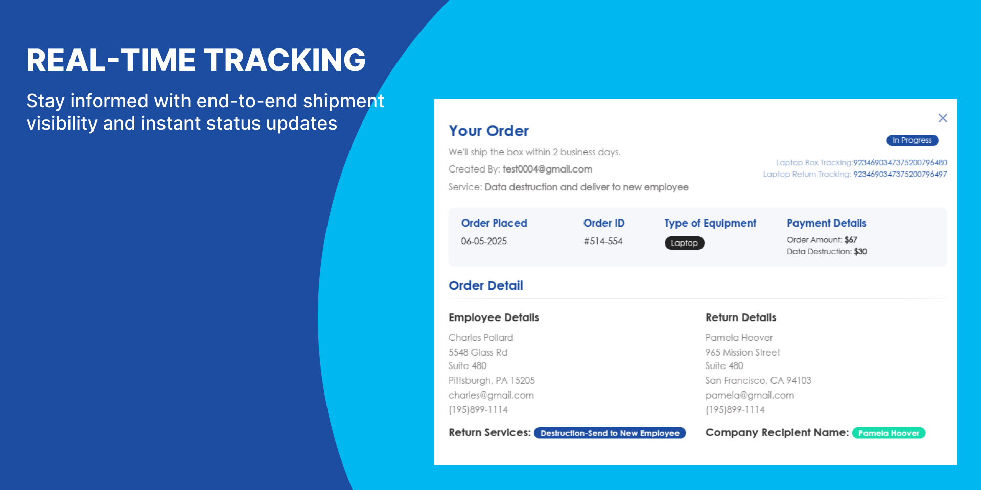 Real-Time Tracking & Notifications - End-to-end visibility of every shipment with status updates available for HR/IT teams and end users.