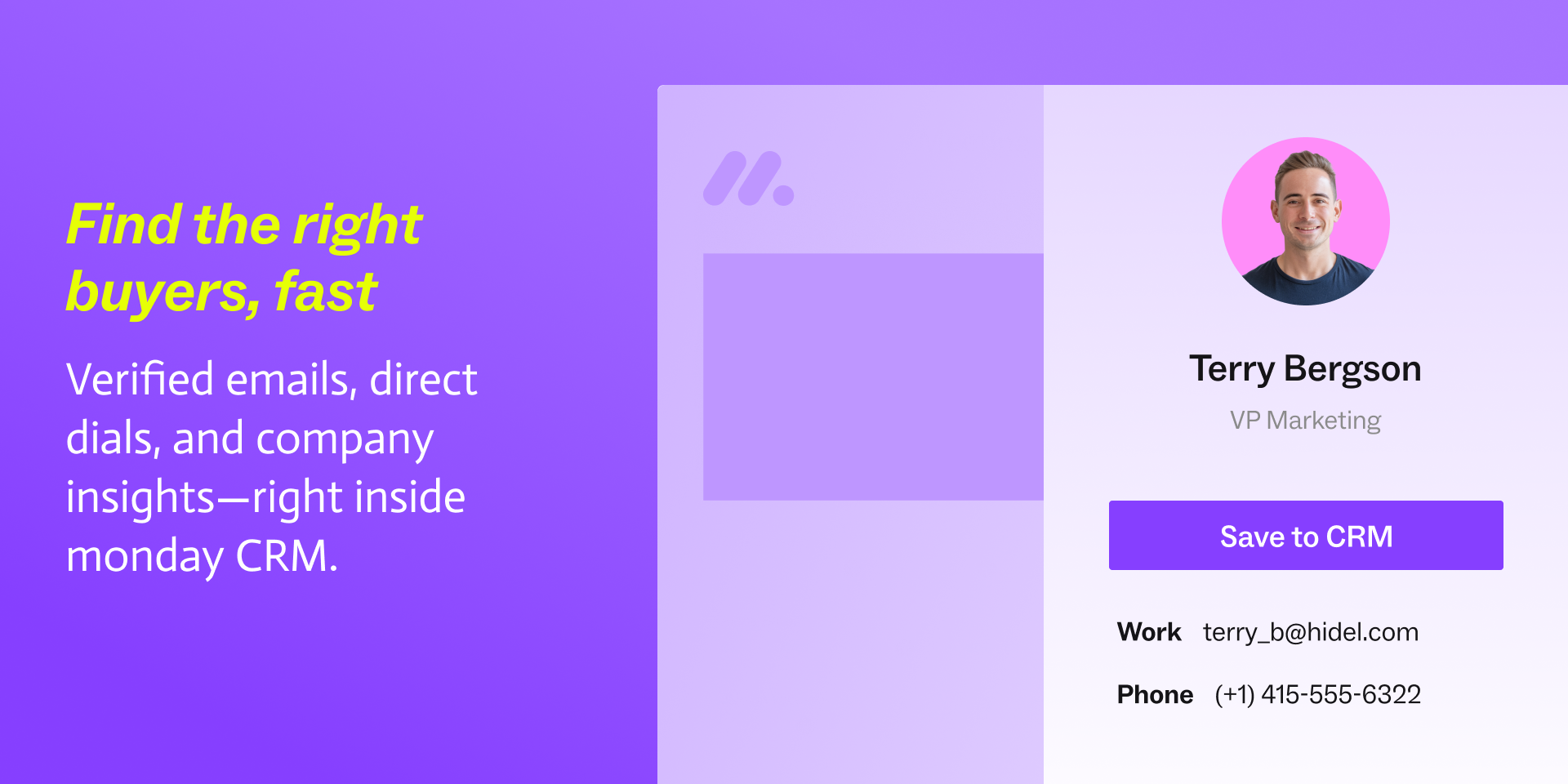 Prospect smarter and close deals faster with Lusha + monday CRM.
