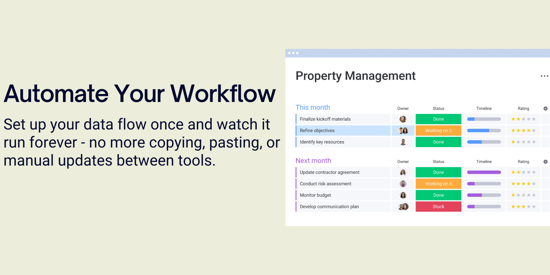 No more manual copying, no more outdated information, no more switching between tabs. Whether you're updating project status in monday or analyzing data in Sheets, everything stays synchronized.