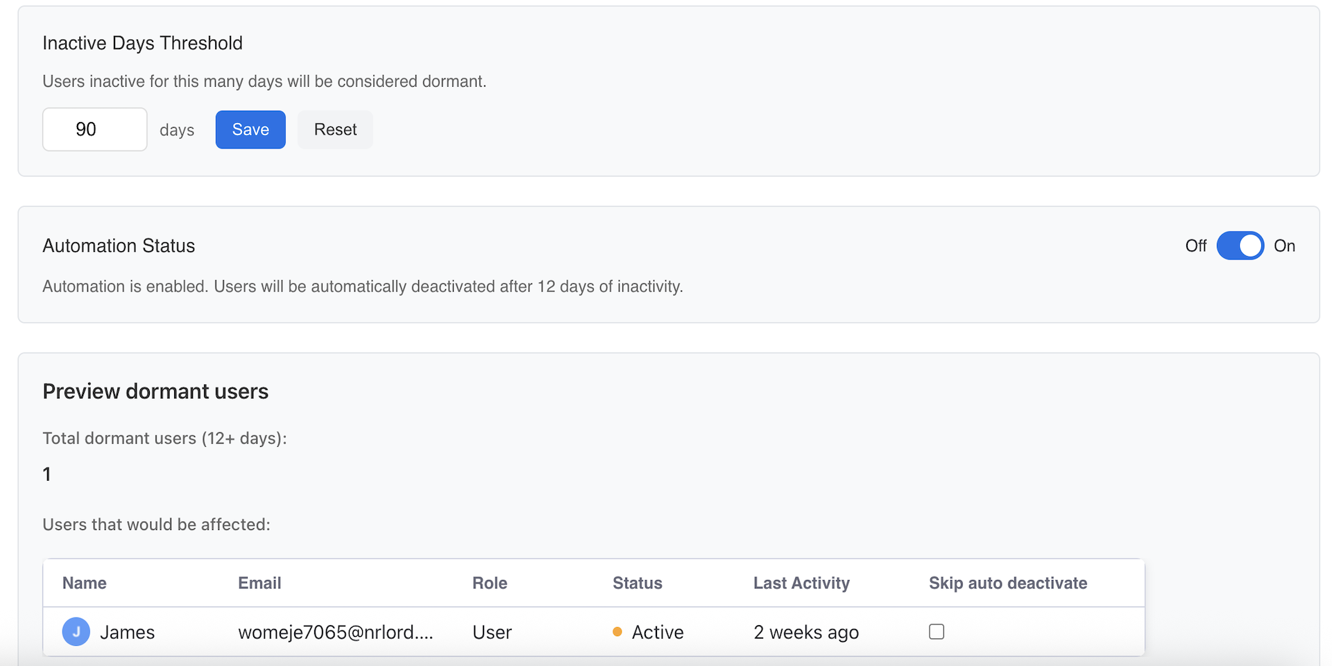 Daily automation — Automatically deactivate users who exceed the inactivity limit.