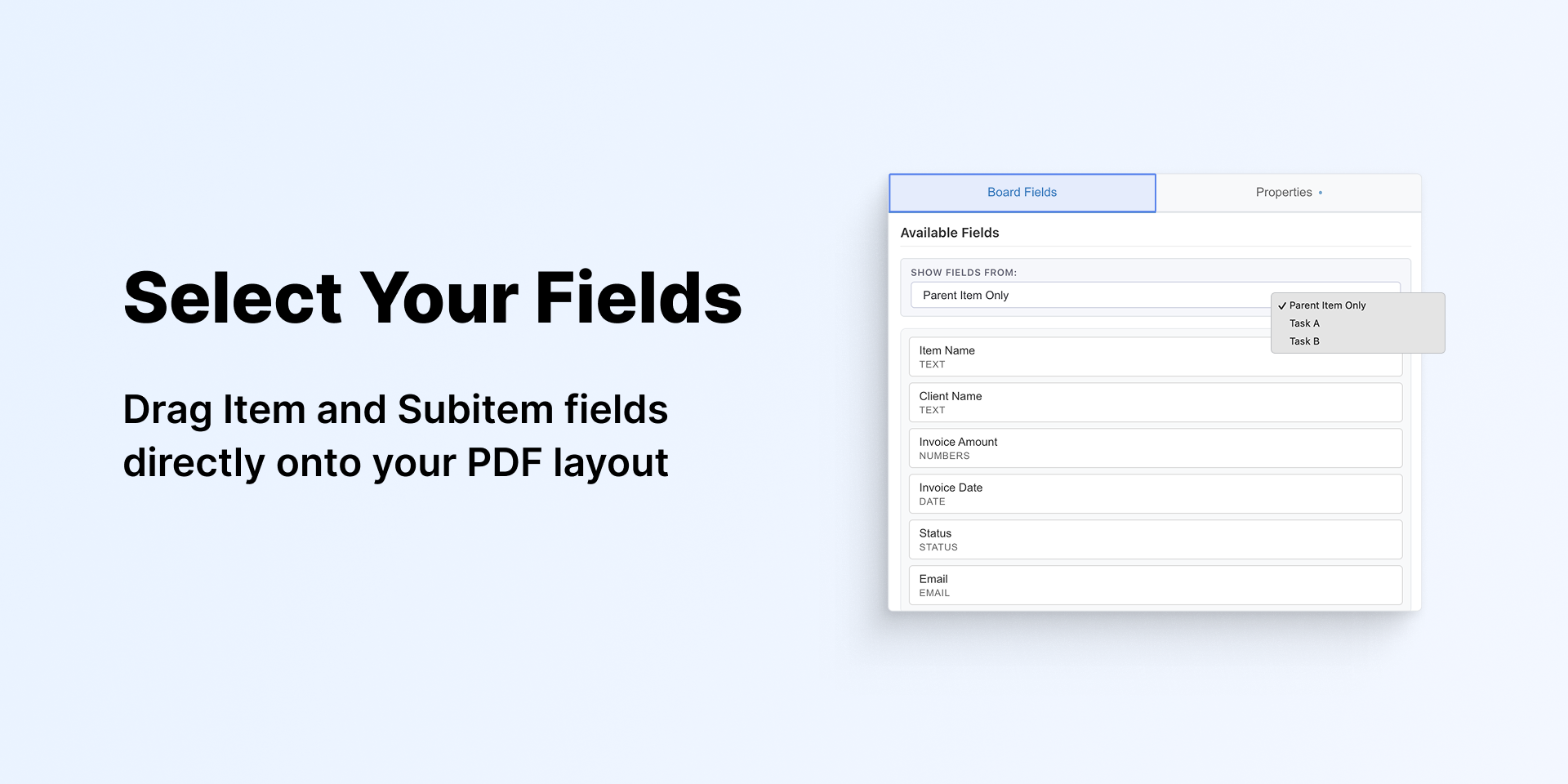 Stop rebuilding your templates from scratch! If you already have branded PDFs, just upload them and we'll help you map monday.com fields (from items or subitems) to the right spots. Your existing templates, your monday.com data, perfectly combined.