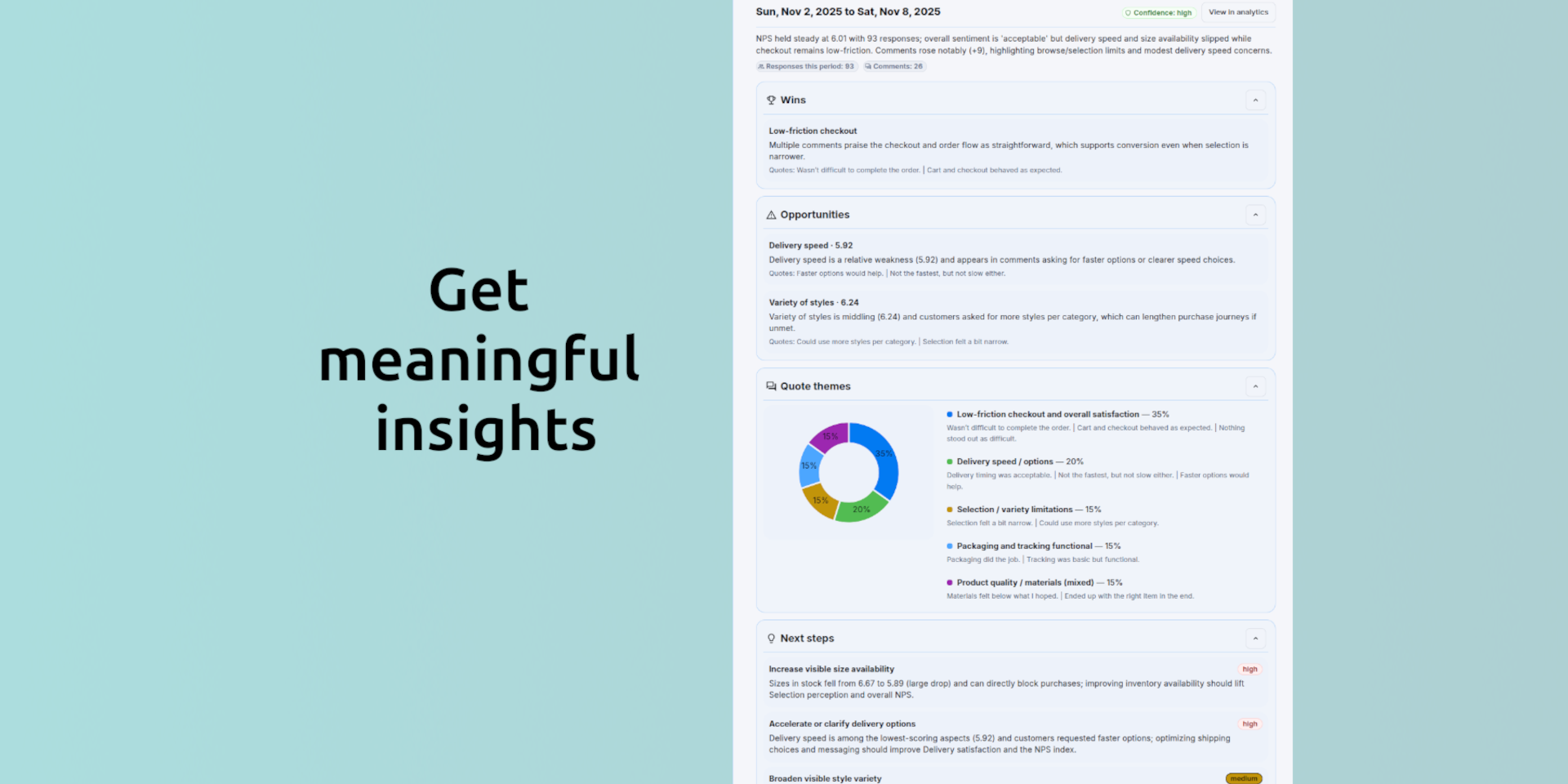 "keywords": "customer feedback,customer satisfaction,customer insights,csat,nps,ces,survey,feedback analytics",