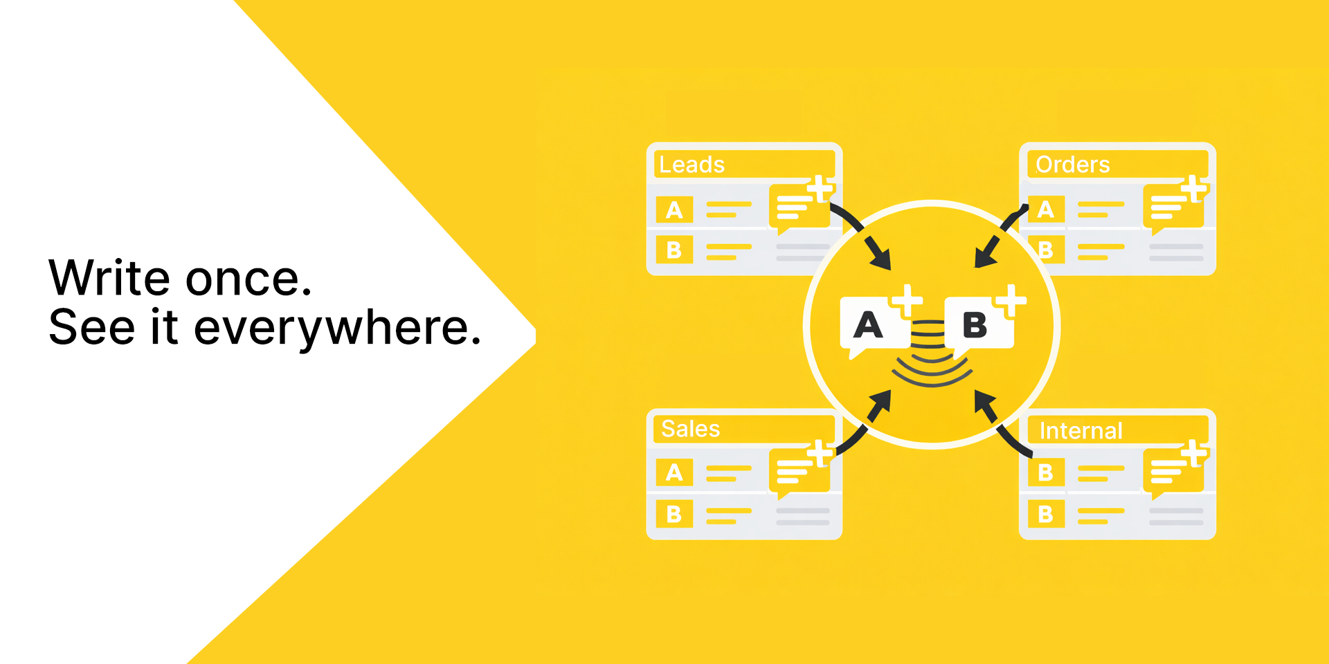 Shared Notes Pro solves this by centralizing the information that should follow an item wherever it appears. Whether you’re tracking an order fulfillment through sales, operations and support, or following up with a customer across multiple sales channels, you’ll never have to re-write or hunt for your team's notes again. Add a note once, and instantly surface that insight everywhere it matters.