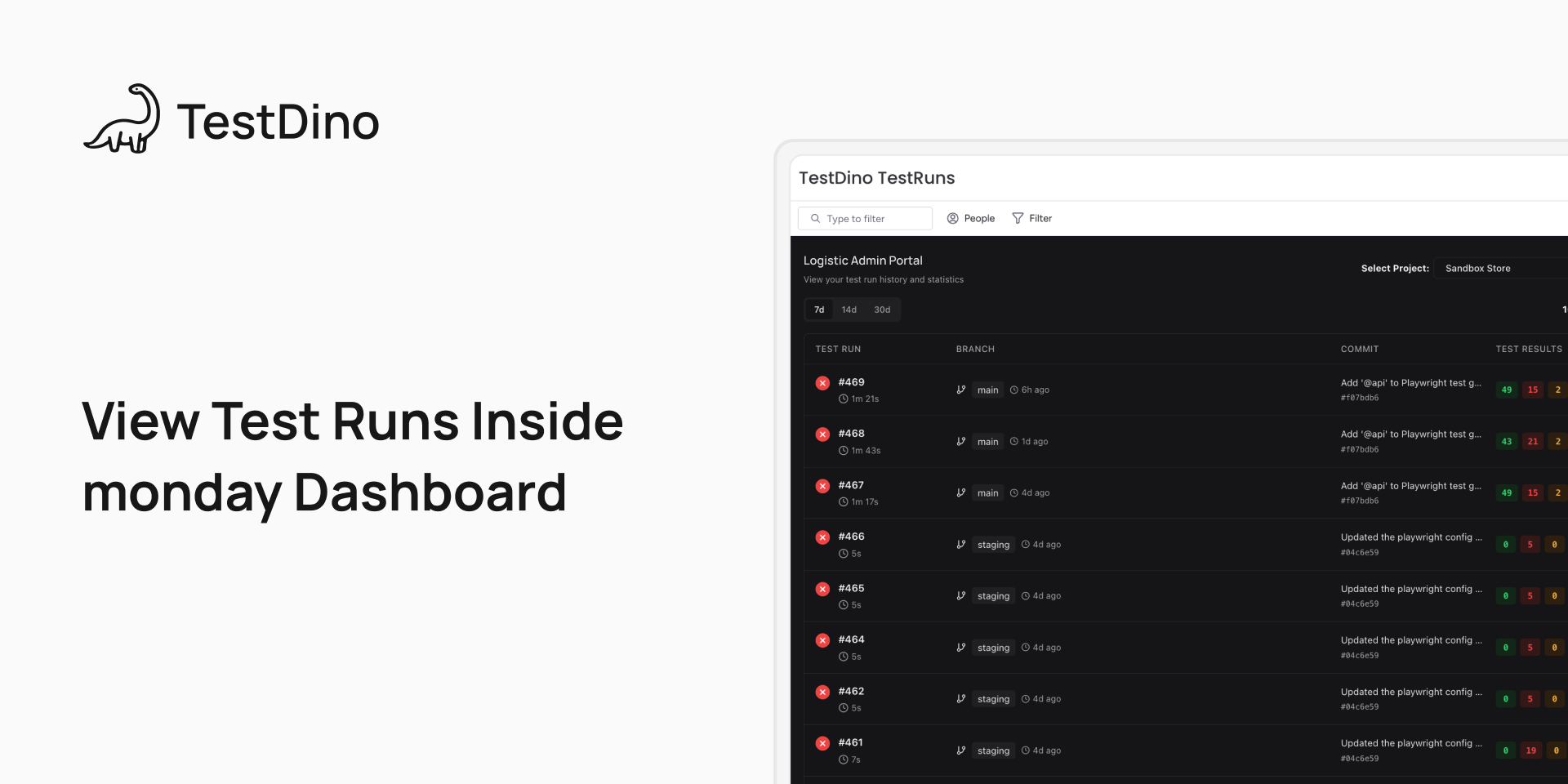 - Add a TestDino widget to monday dashboards for real-time visibility into test runs.