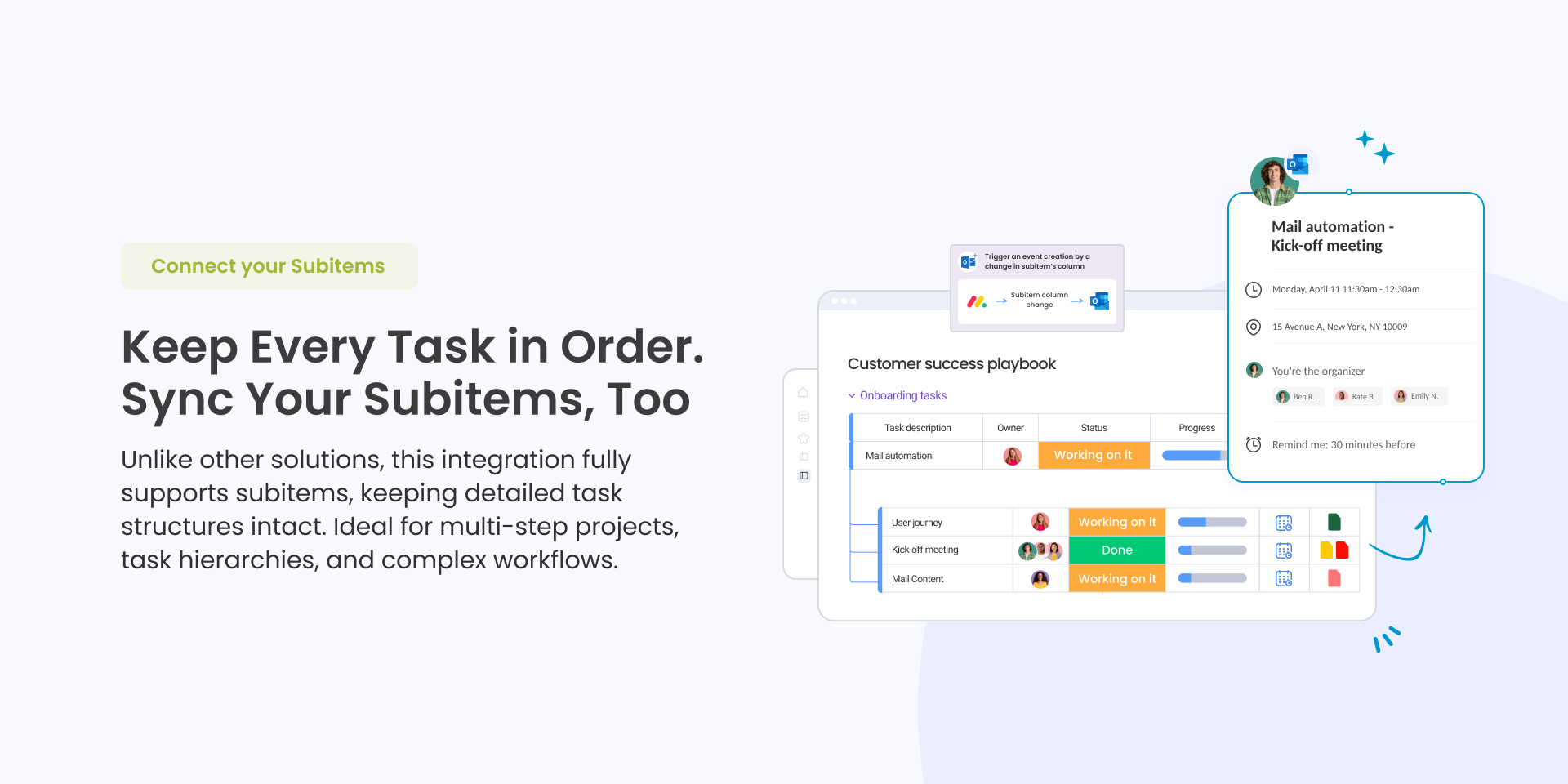 ✅ Automatically turn items & subitems into Outlook events (and vice versa)