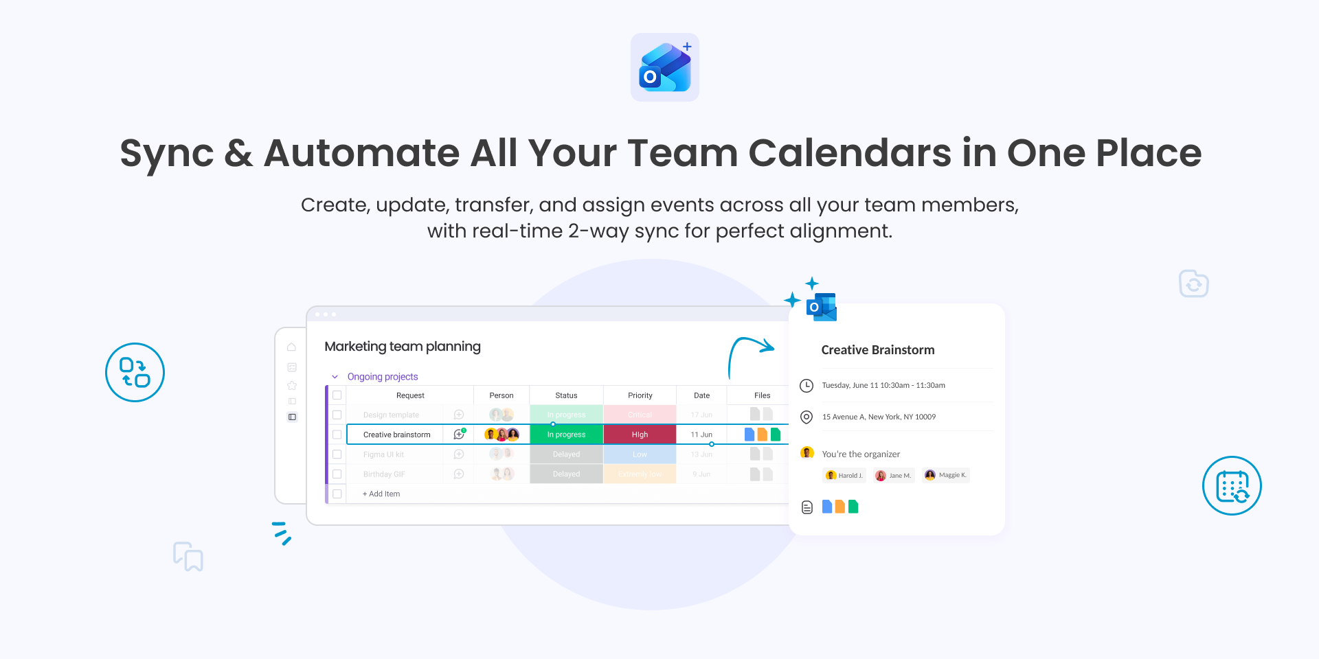 Automatically create, update, transfer, and assign events across all your team members and calendars. Keep your team perfectly in sync without manual work.