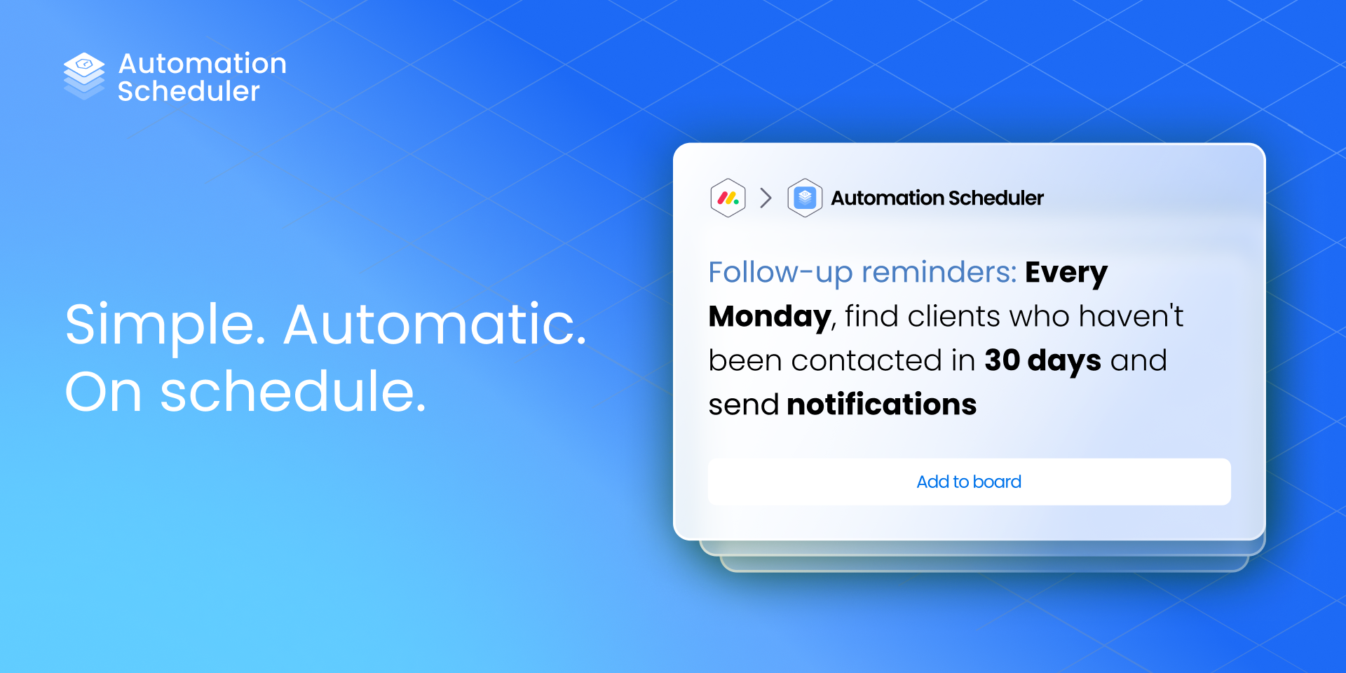 Automation Scheduler brings proactive automation to monday.com. (Free to use while in early release!)
