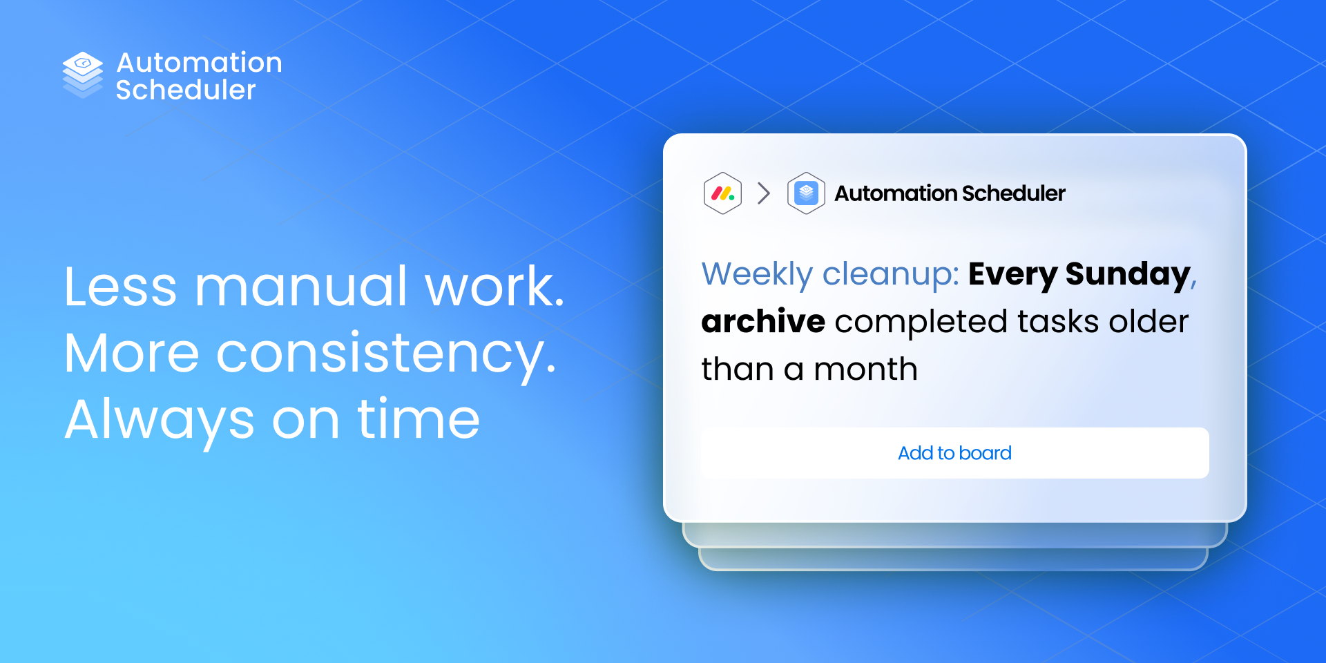 "keywords": "automation,scheduler,bulk actions,time-based,recurring,board scan,workflow,item updates,productivity,filter",