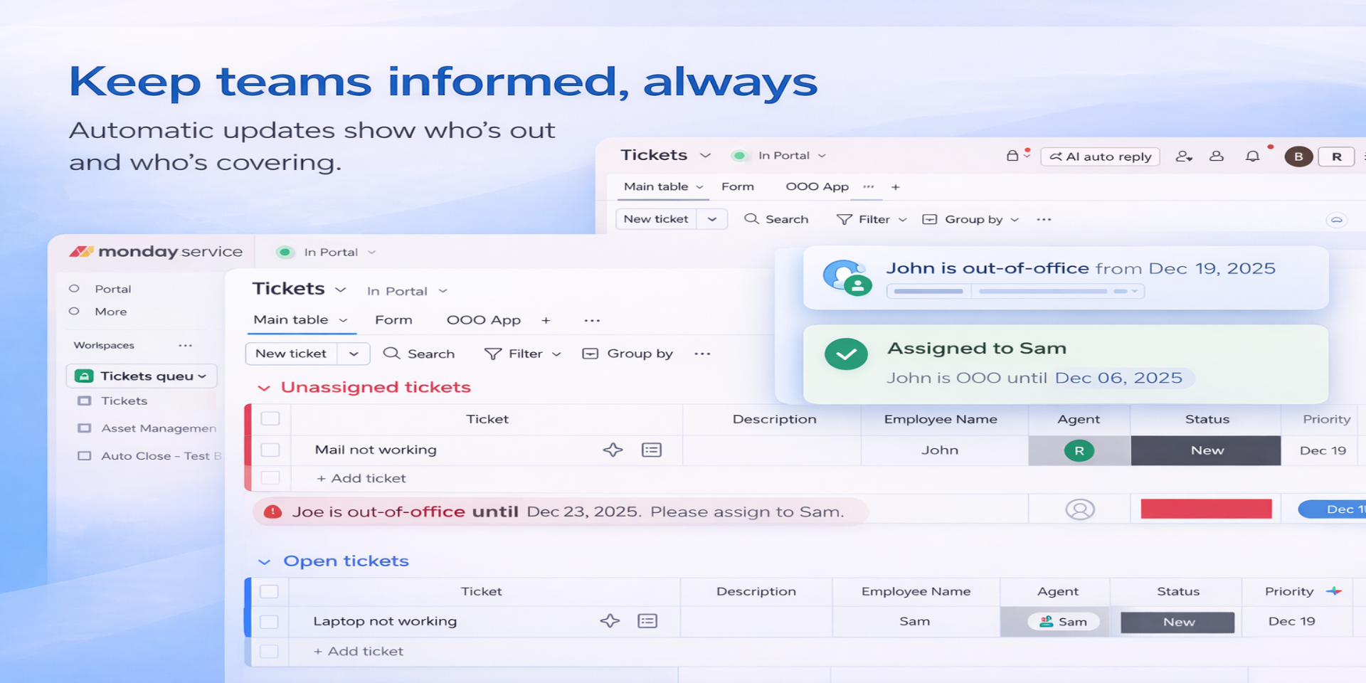 Out of Office Assistant helps teams manage work seamlessly when people are unavailable by automatically handling ownership, routing work to backups, and keeping everyone informed.