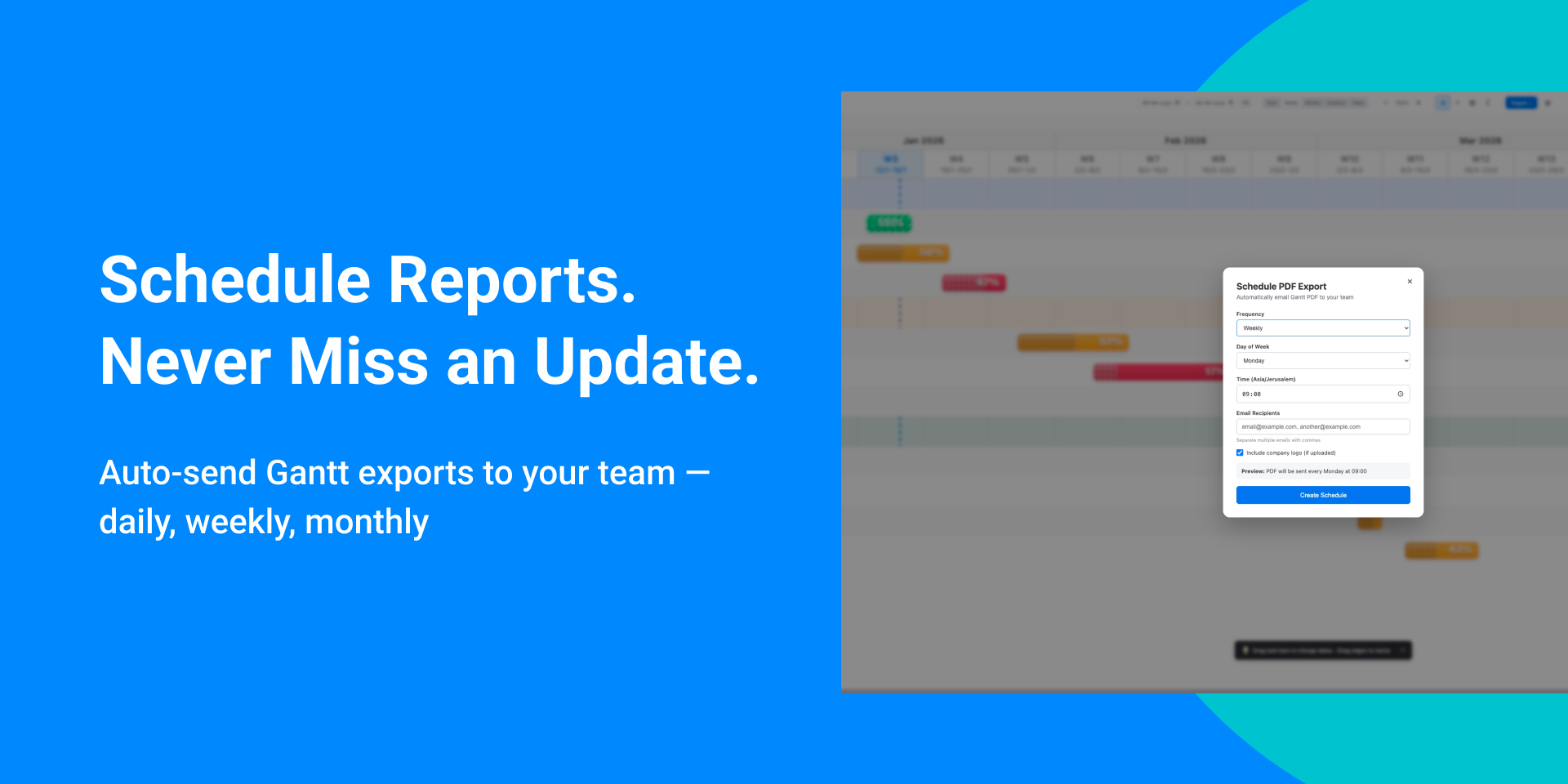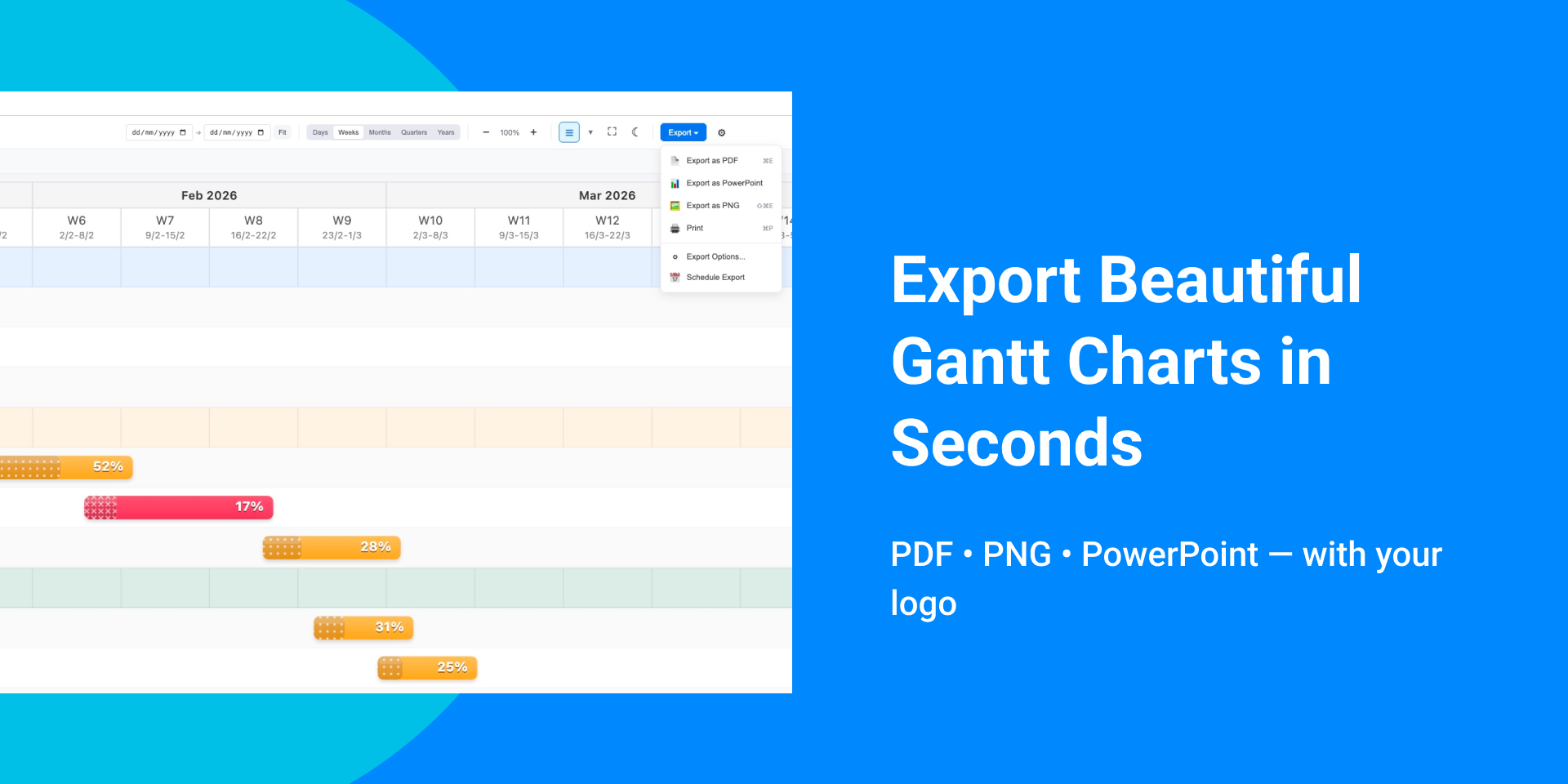 "short_description": "Export Gantt PDFs, schedule reports, track critical path",