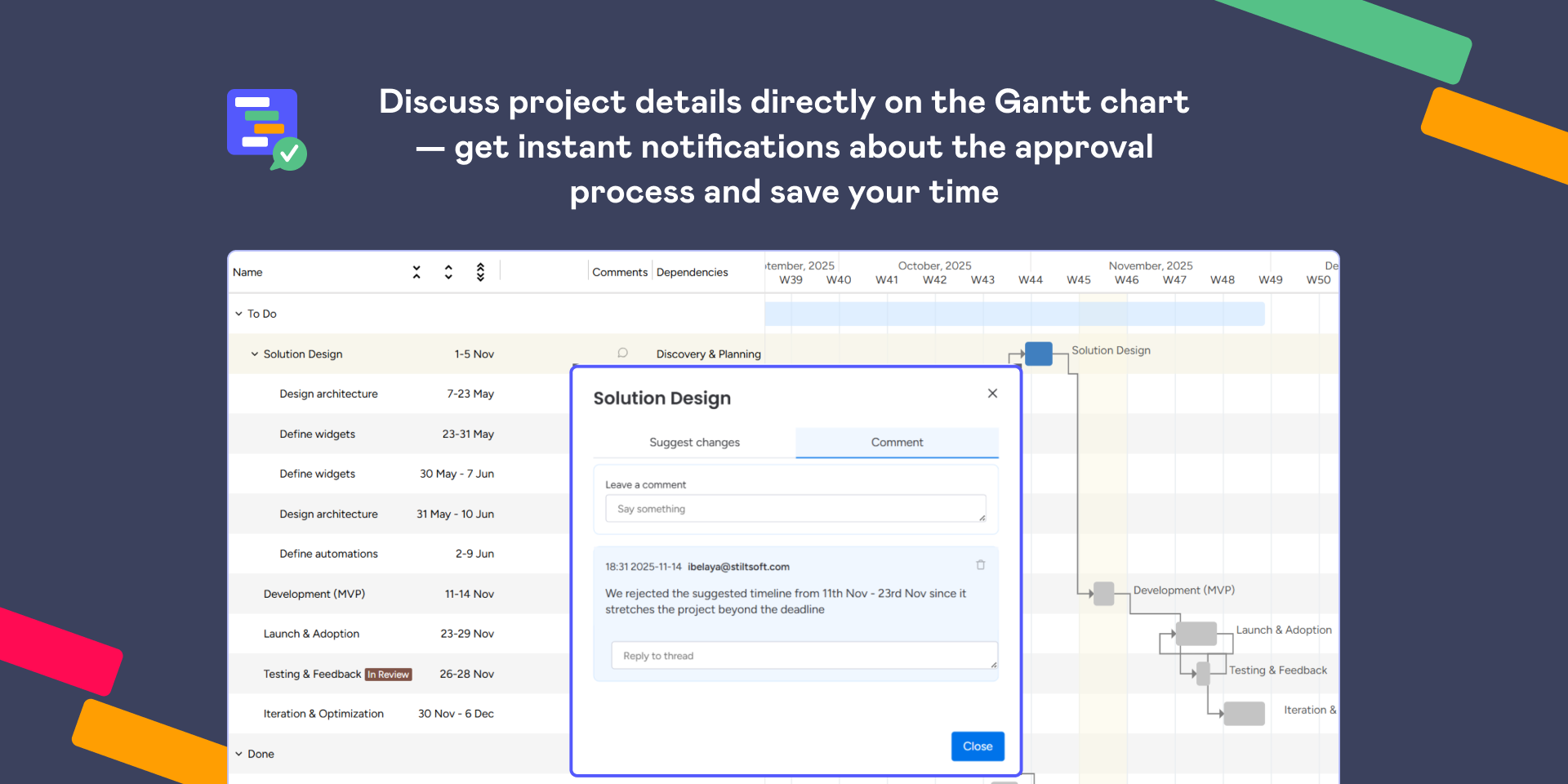 💬Collaborate directly on the Gantt