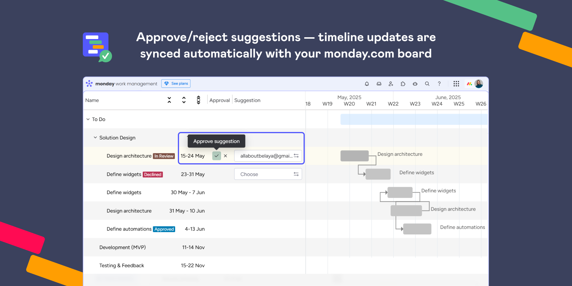 Interactive Gantt Timeline for monday.com shortens feedback loops and speeds up project alignment.
