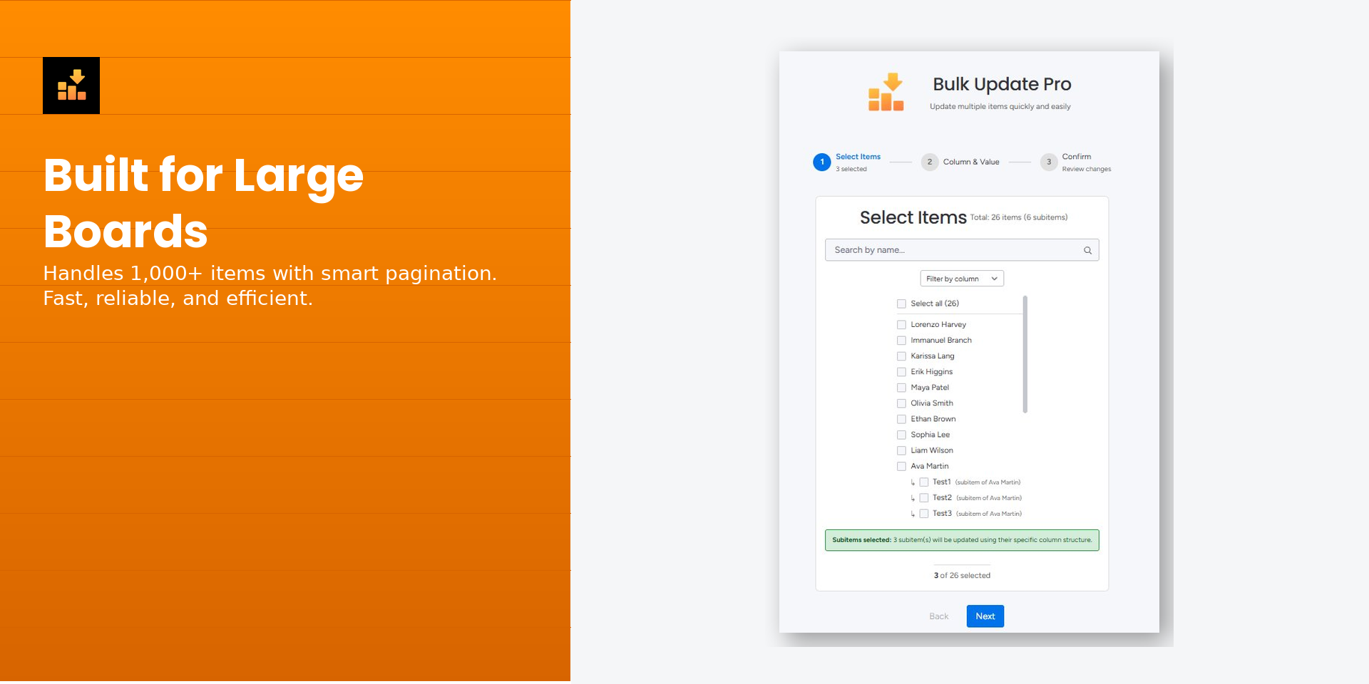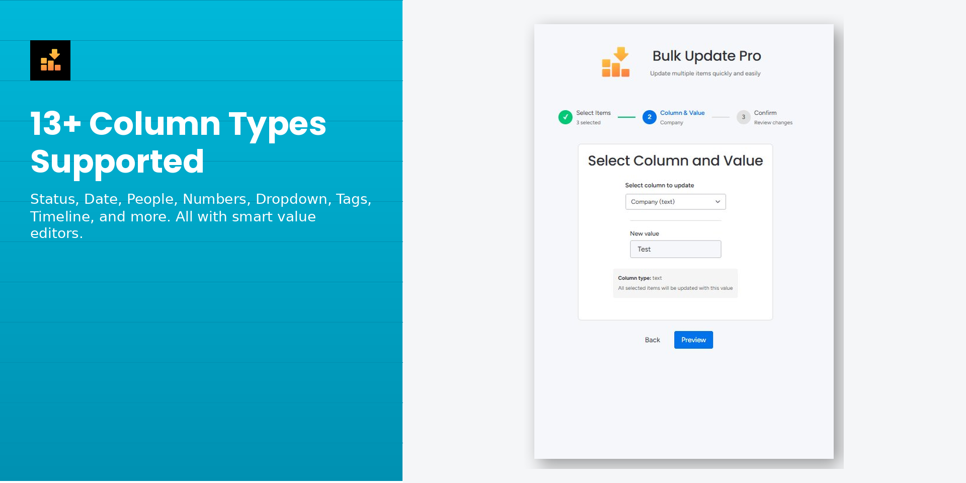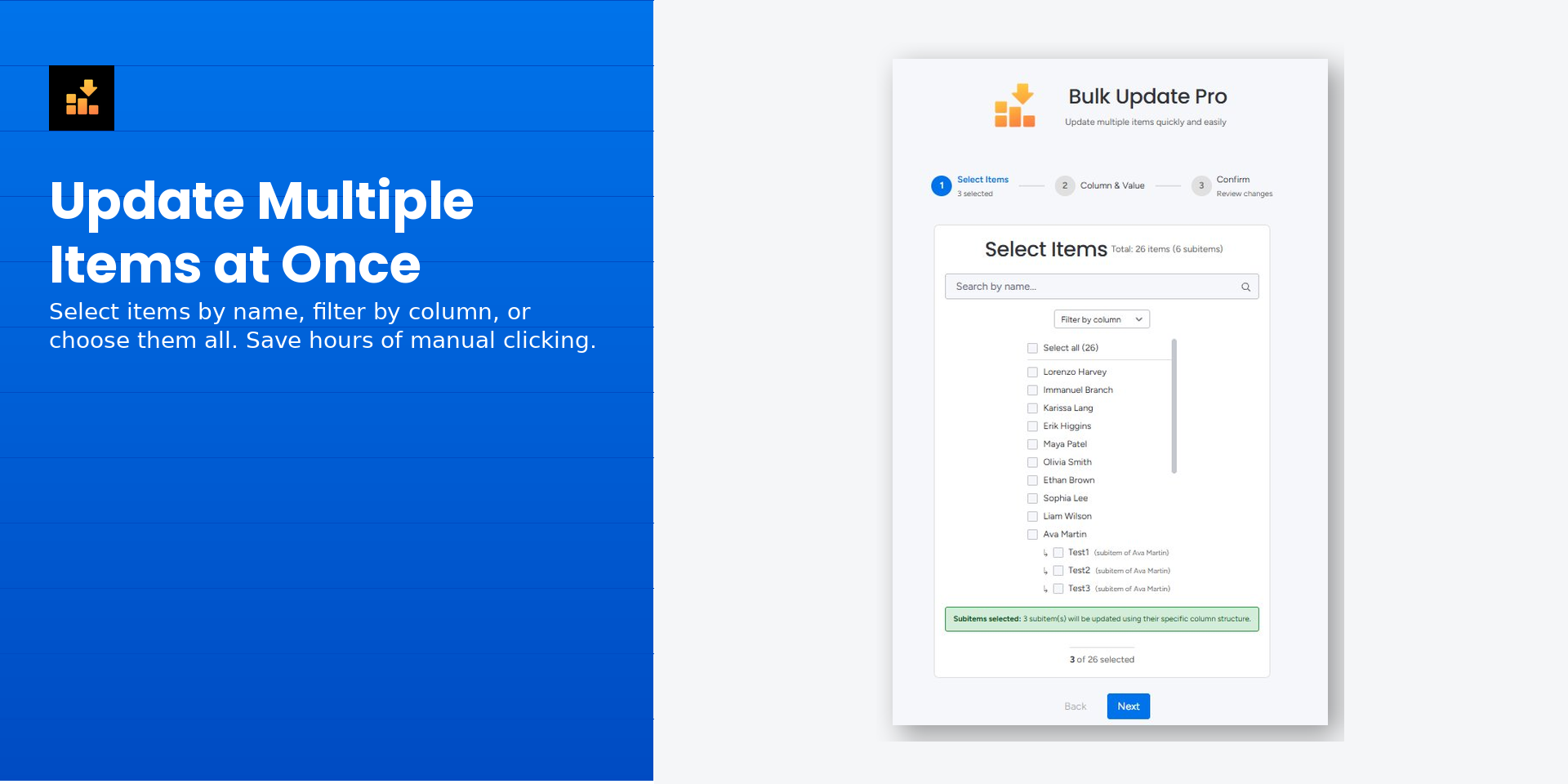 Bulk Update Pro is a powerful batch editing tool for monday.com that lets you update hundreds or thousands of items simultaneously. Perfect for teams managing large boards, project managers coordinating multiple workflows, and operations teams maintaining data accuracy across complex projects.