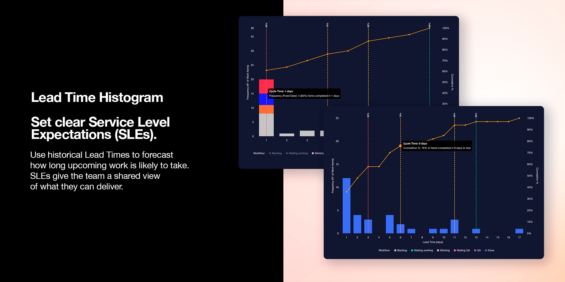 Set clear Service Level Expectations (SLEs) using percentiles and the cumulative curve to understand and forecast how long upcoming work is likely to take.