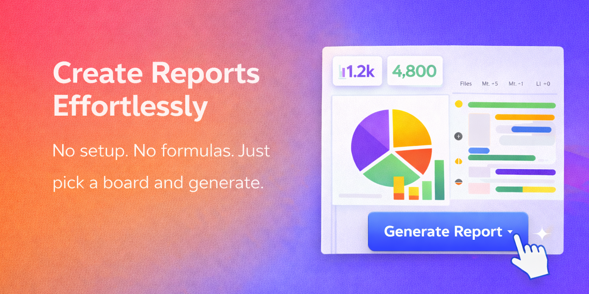 Stop exporting boards and building reports manually. Generate polished reports in just a few clicks.