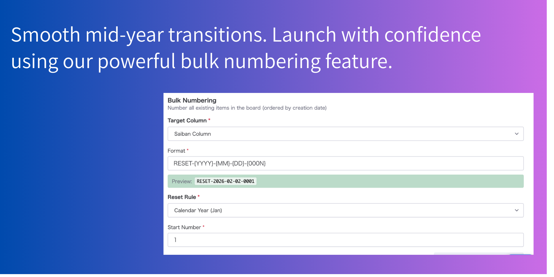 Saiban Pro is an auto-numbering solution designed specifically for Japanese business practices.