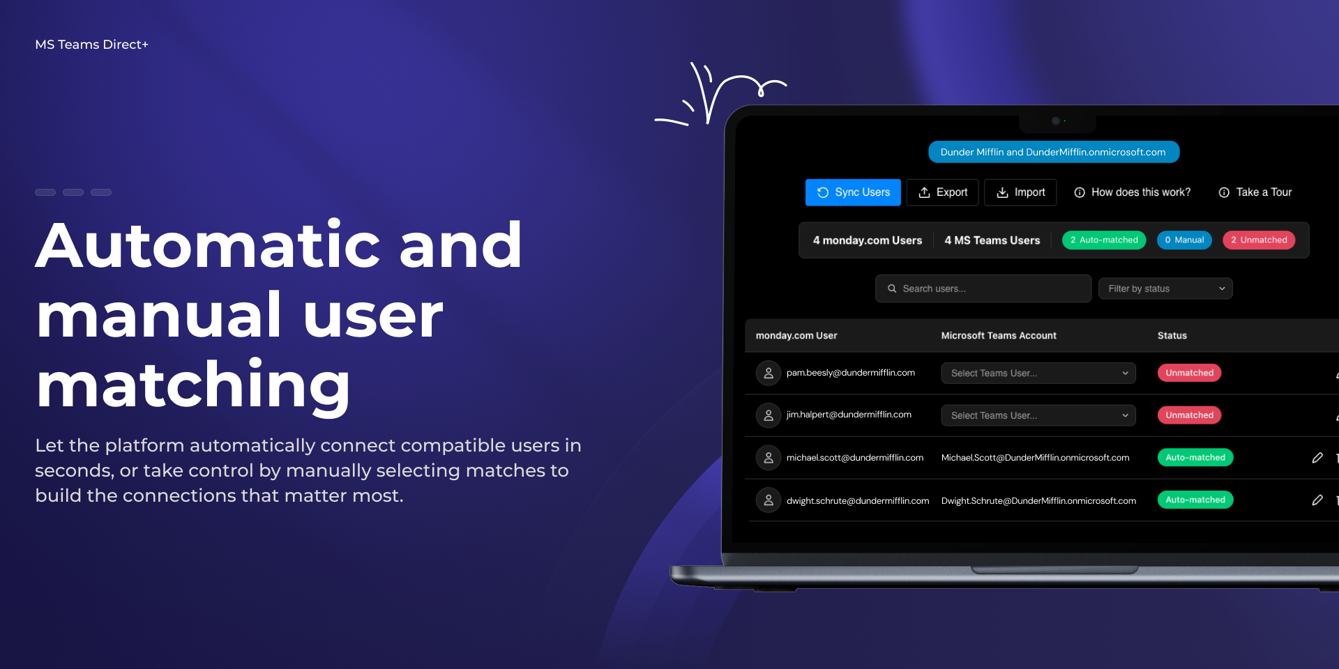 • Flexible mapping options — Map users manually or bulk import via CSV when emails don't match