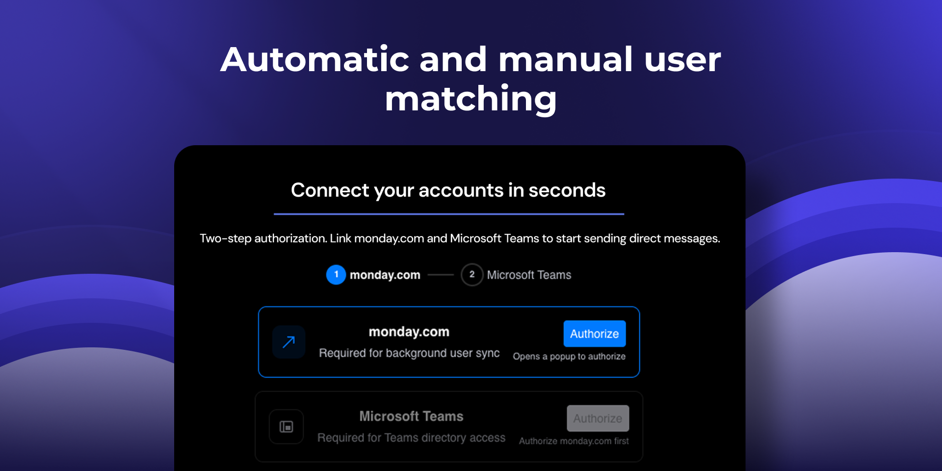 • Automatic user mapping — If your monday.com emails match your Teams accounts, users sync instantly with zero setup