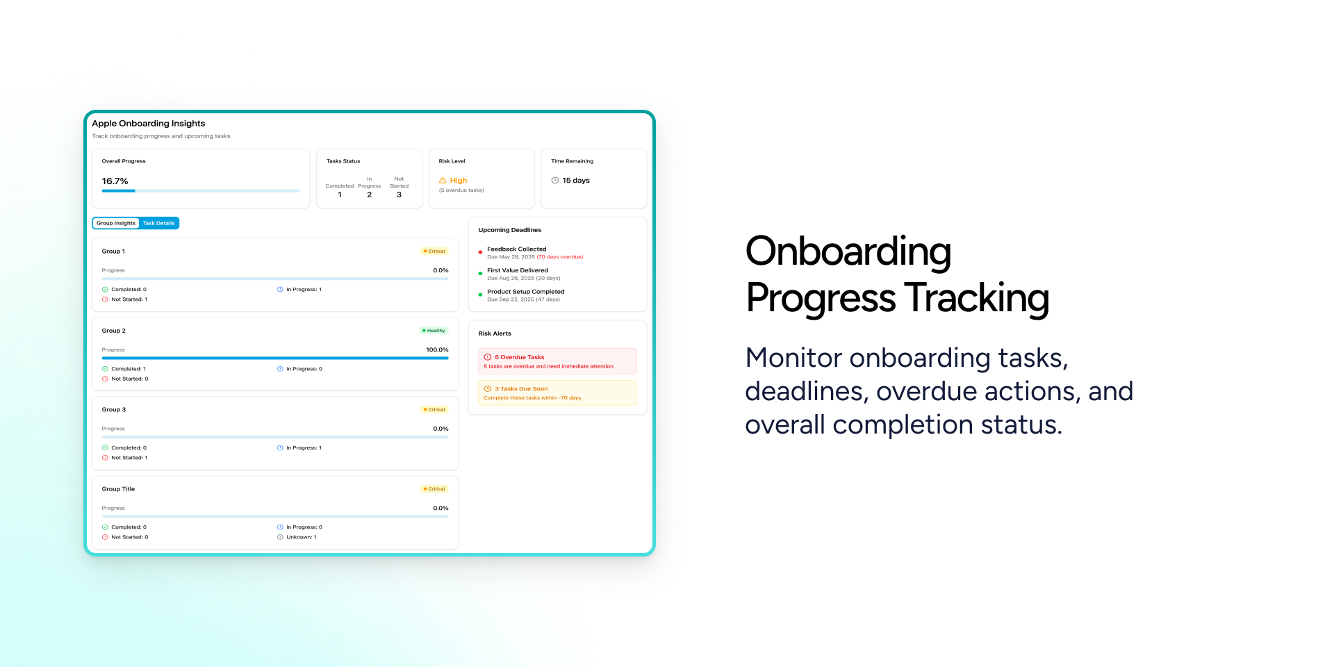 CSMFlow is a Customer Success Management app built natively for the monday.com CRM ecosystem. It helps Customer Success Managers proactively identify at-risk accounts, track onboarding progress, and drive renewals using actionable insights - all directly from their monday boards.