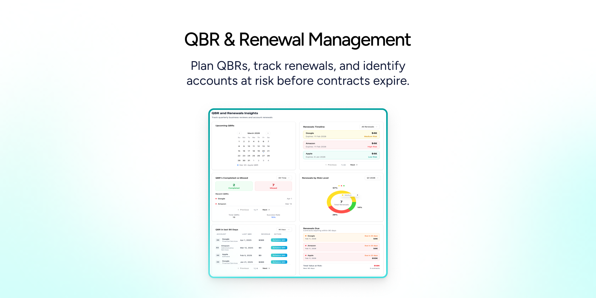 With CSMFlow, teams can monitor account health scores, detect churn risks, and take timely actions using playbooks, QBRs, and renewal workflows. The app provides multiple dashboards, including onboarding insights, account insights, QBR & renewal insights, and overall customer health views, giving CSM teams a clear picture of customer engagement and risk at every stage.