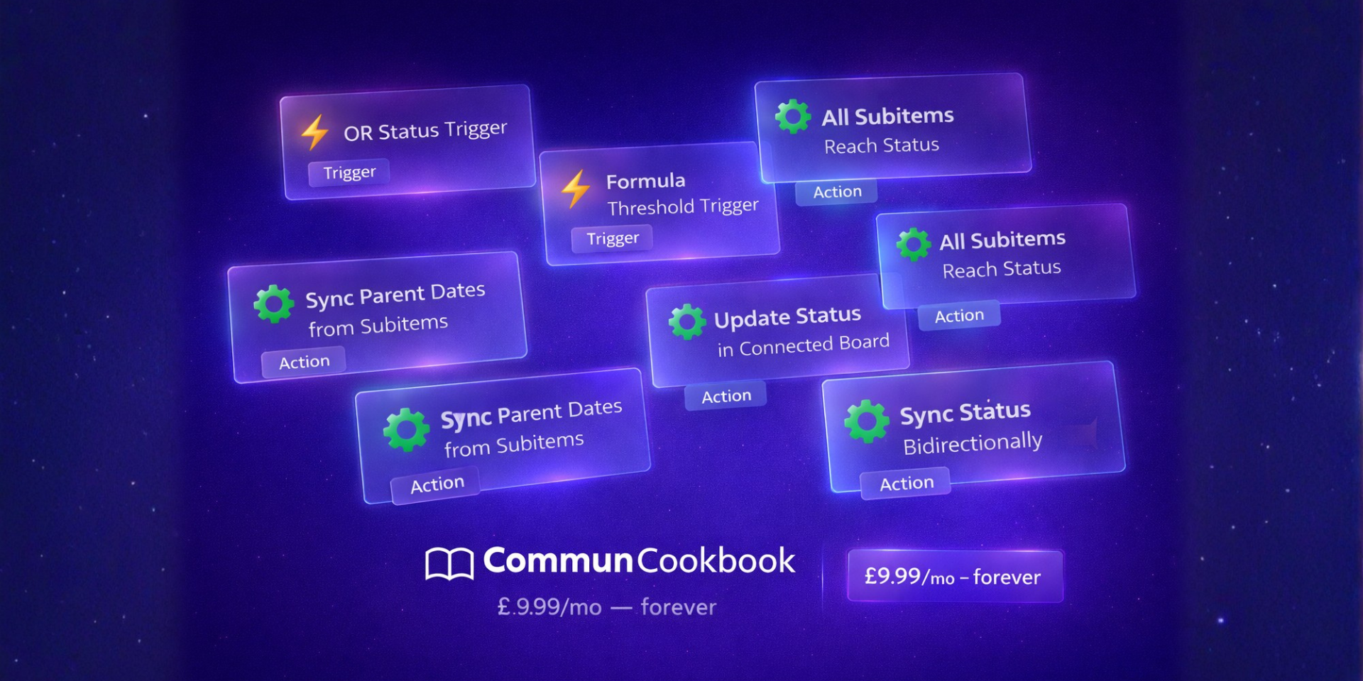 The Community Cookbook is a powerful automation engine built for monday.com teams who need more than what native automations offer. Where monday.com stops, this app picks up — giving you a growing library of precision-built recipe blocks that handle the edge cases, column types, and cross-board logic that everyday work actually demands.