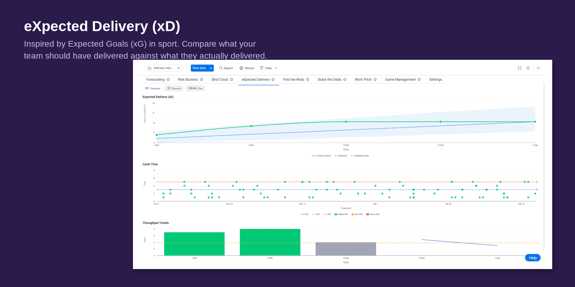 - Expected Delivery (xD) — Compare what your team should have delivered against what they actually delivered. Spot drift by week 2, not end of quarter.