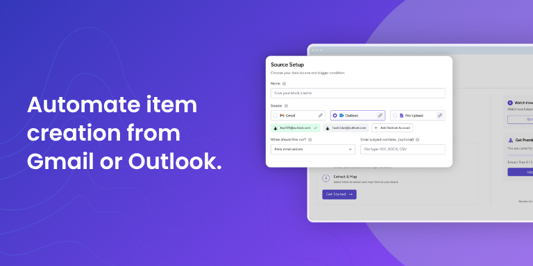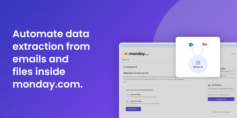 Extract AI instantly extracts key information from emails, attachments, and files into your monday.com boards. Powered by OCR and AI, it converts unstructured content into clean, usable data — saving teams hours every week. Perfect for CRM, accounting, and help desk teams, Extract AI eliminates manual data entry, saves hours each week, and keeps your workflows accurate and up to date.